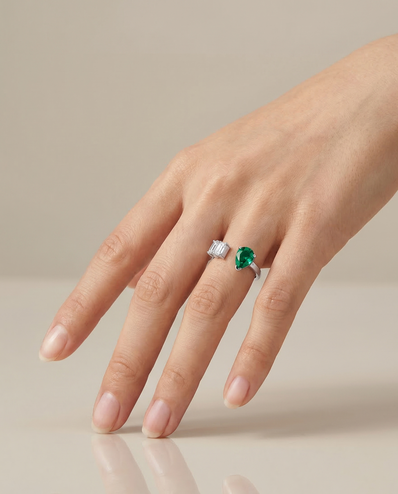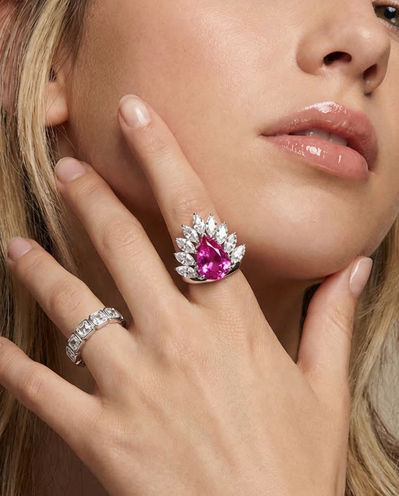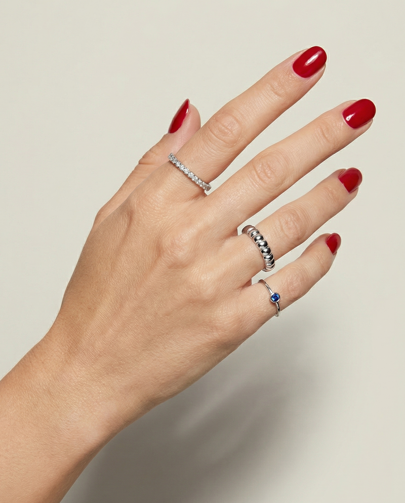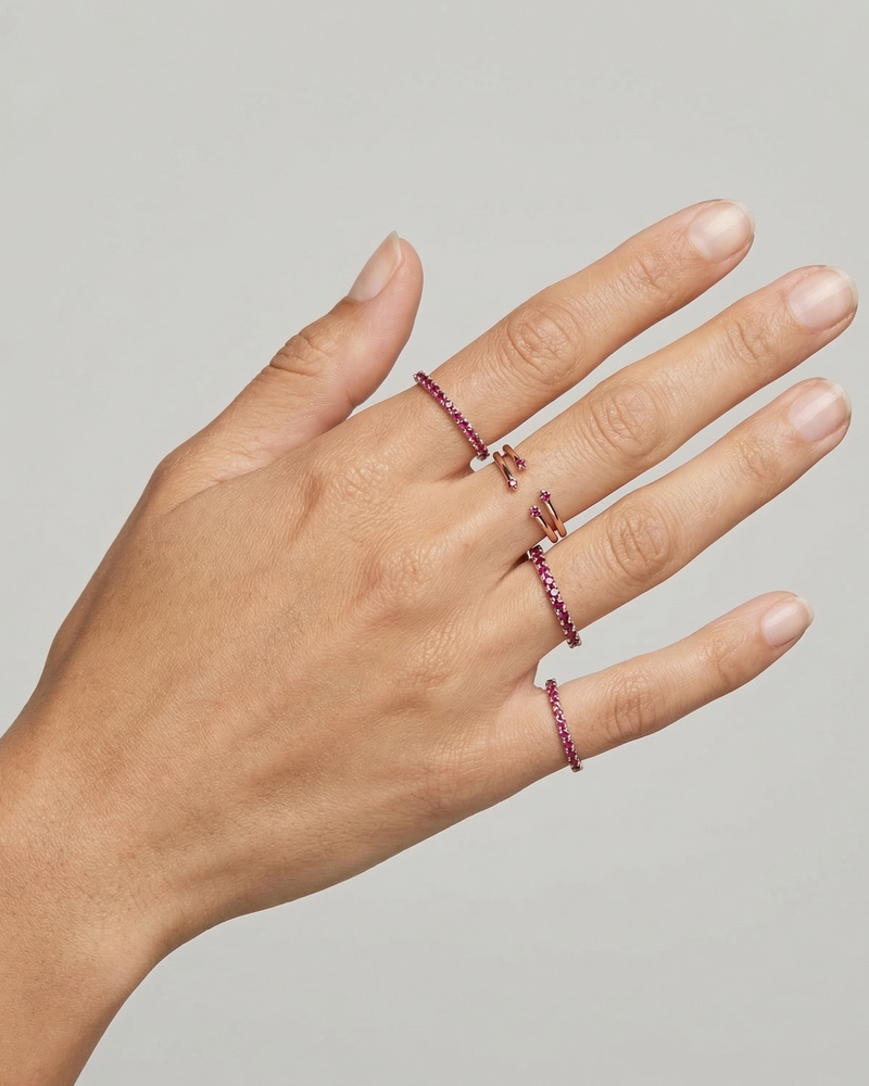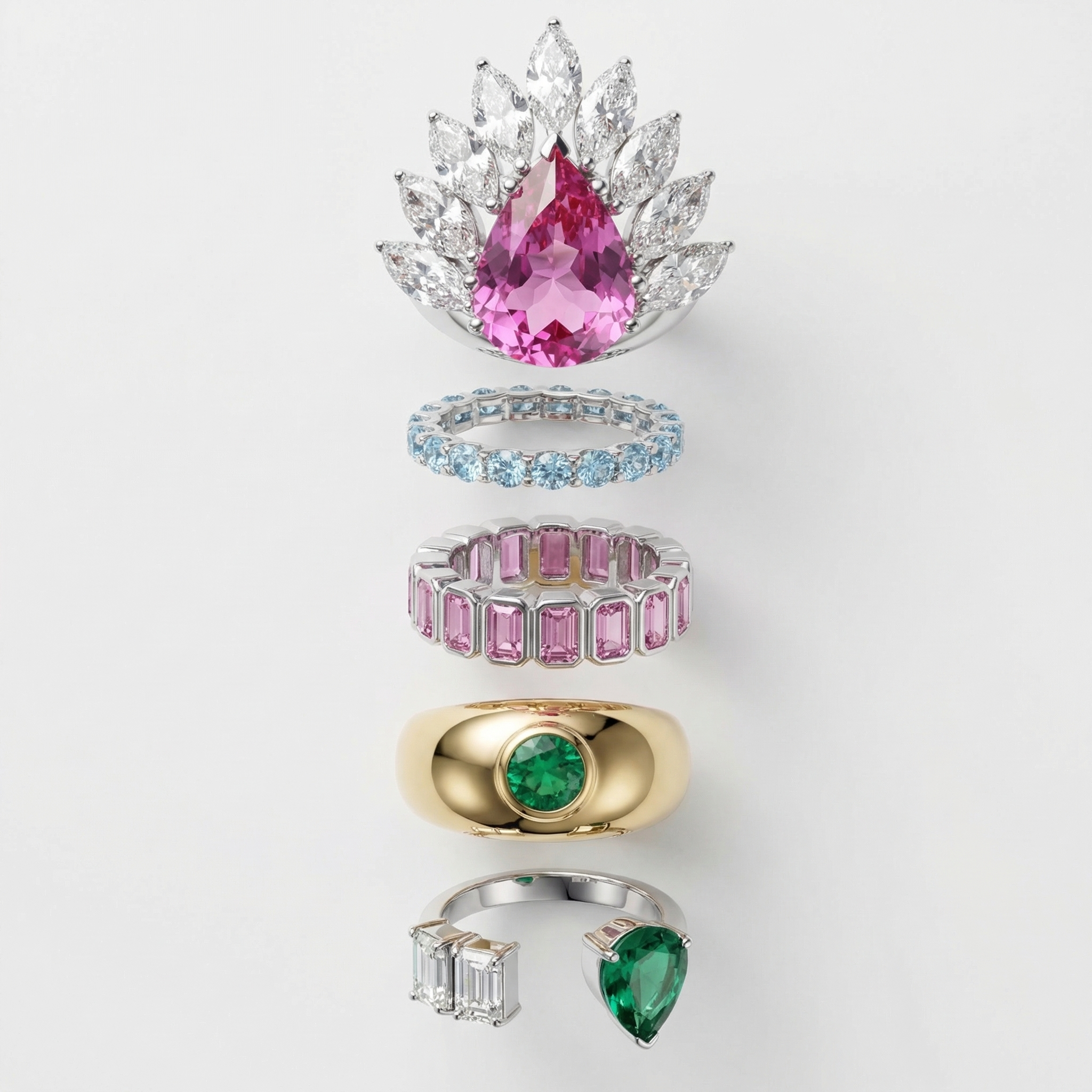 Fine jewellery in solid gold, set with precious gemstones in 13 signature colours.