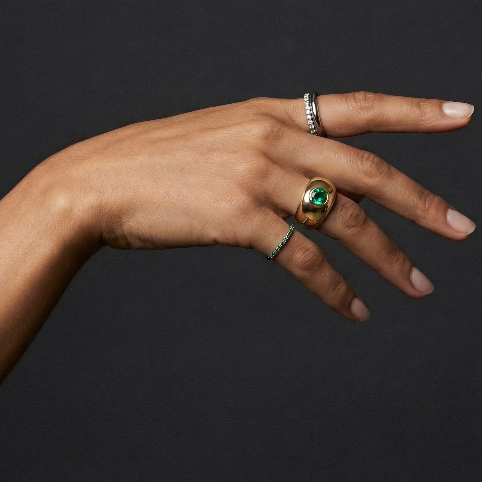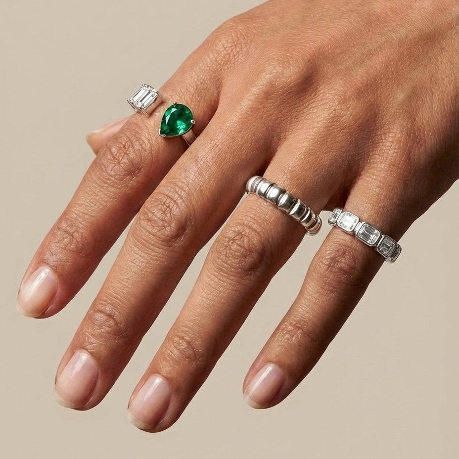 Handcrafted in solid gold and set with precious lab-grown gemstones in 13 signature colours.