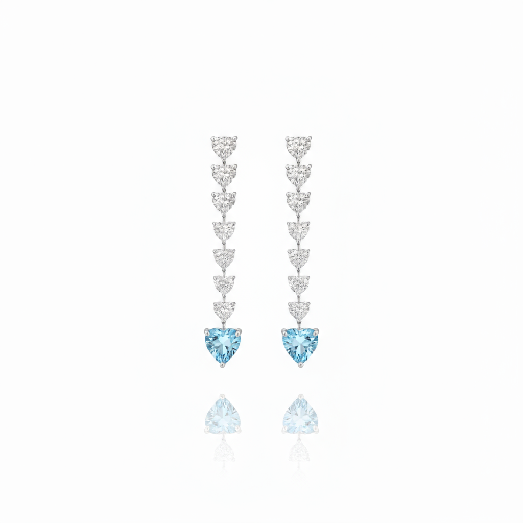 Articulated heart drop earrings with diamond accents and coloured gemstone finale