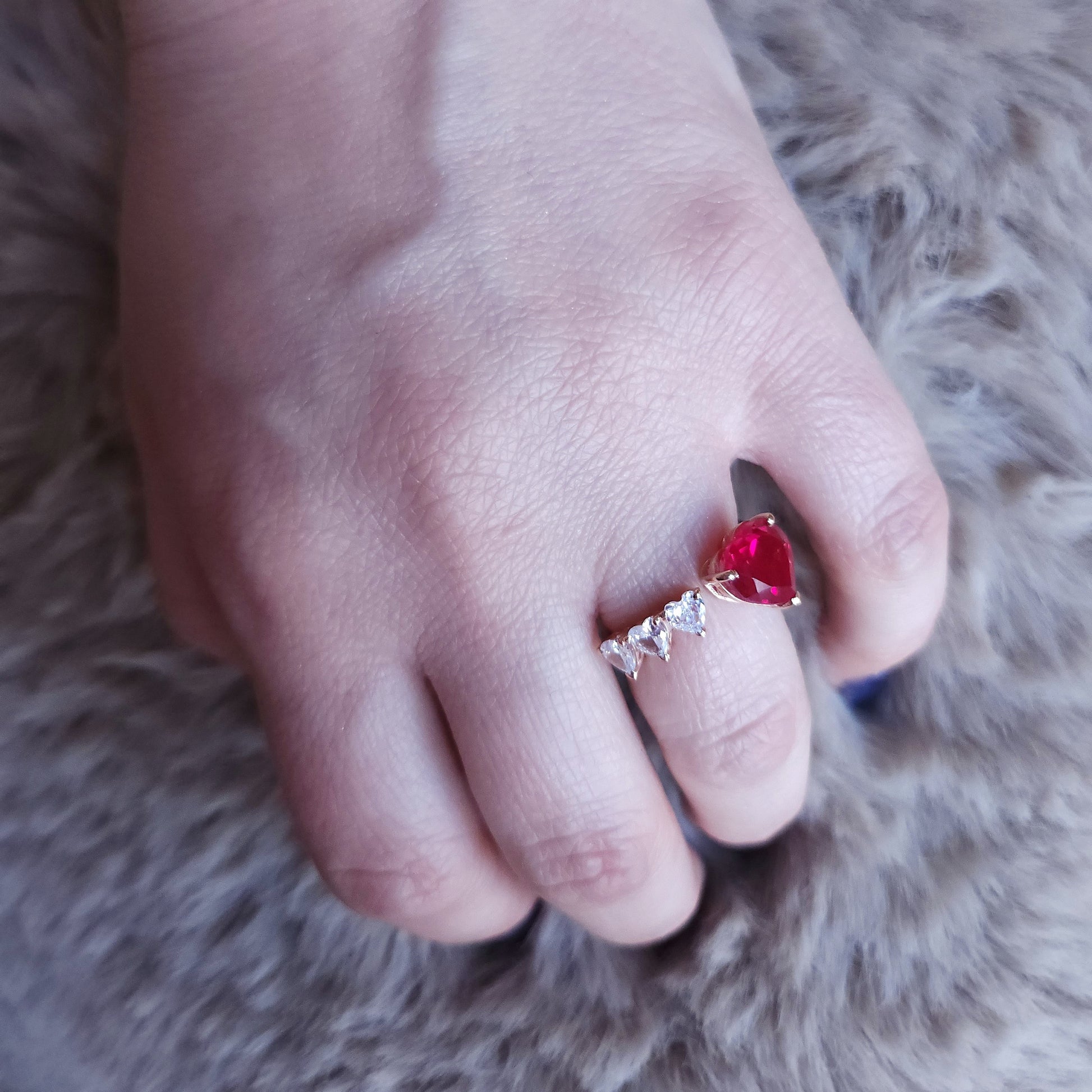 This open ring design features a large heart-cut centre stone on one side, balanced by three smaller heart-shaped stones on the other. The asymmetrical silhouette creates a playful yet refined look, ideal for stacking or wearing as a standalone statement. Crafted in precious metals with claw-set stones. Available in all Atlas Carré signature colours.