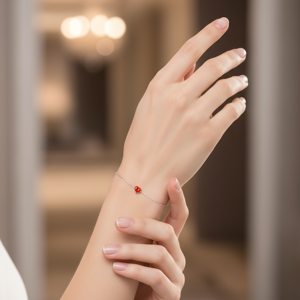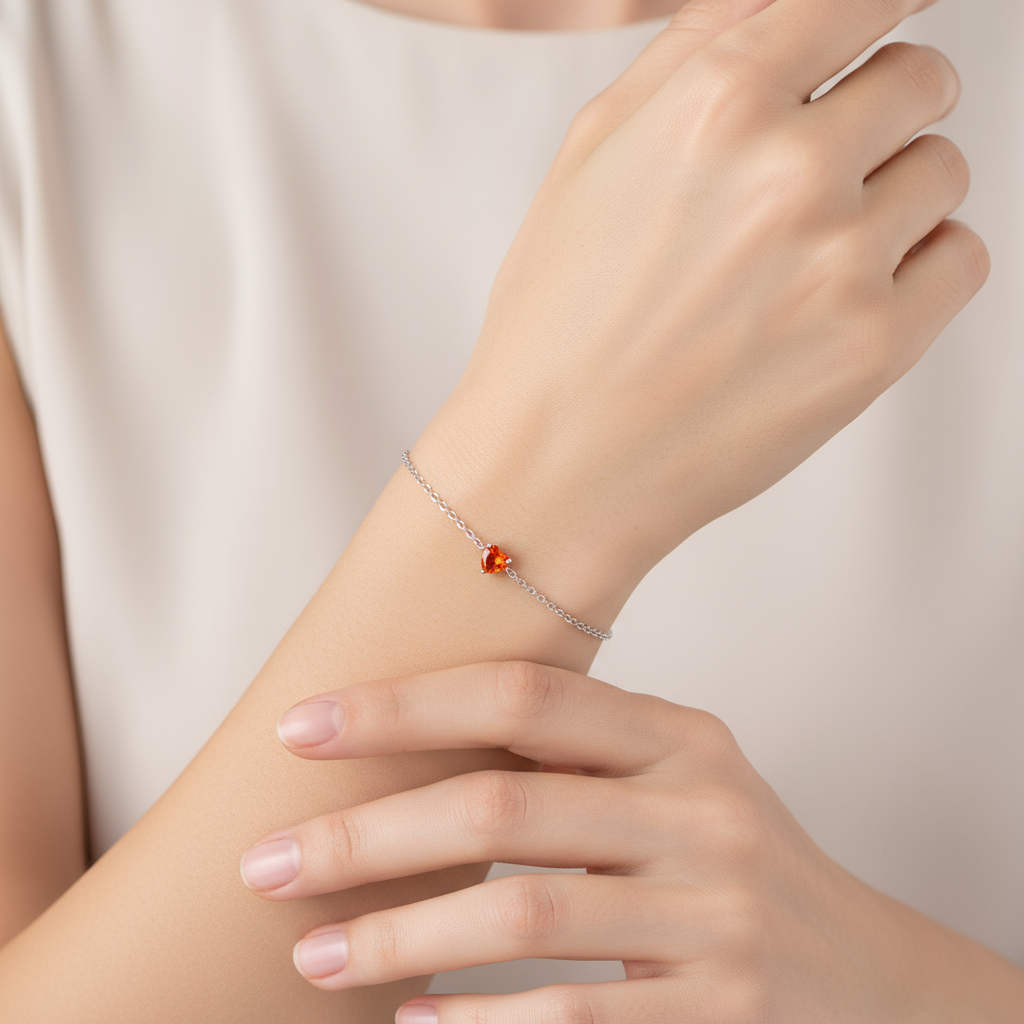 Delicate chain bracelet with a heart cut gemstone in a three-prong setting