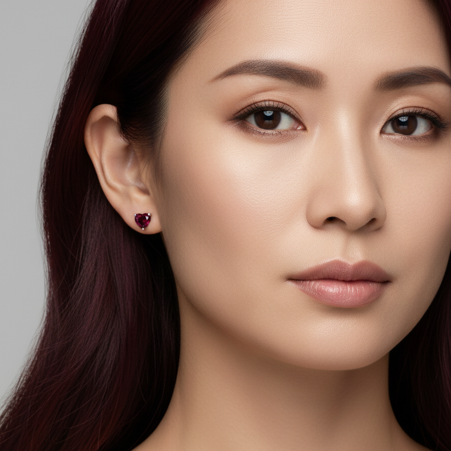 The Amore Stud Earrings feature heart cut gemstones set in a classic 3 prong setting for a clean, modern look. Available in two sizes: Mini with 5 mm stones for a subtle, minimalist style, and Grande with 7 mm stones for a noticeable everyday statement. Designed to sit flush against the ear and stack effortlessly with other earrings or drops or wear alone. Shown in White Diamond and Deep Red Garnet, available in all Atlas Carré signature colours.