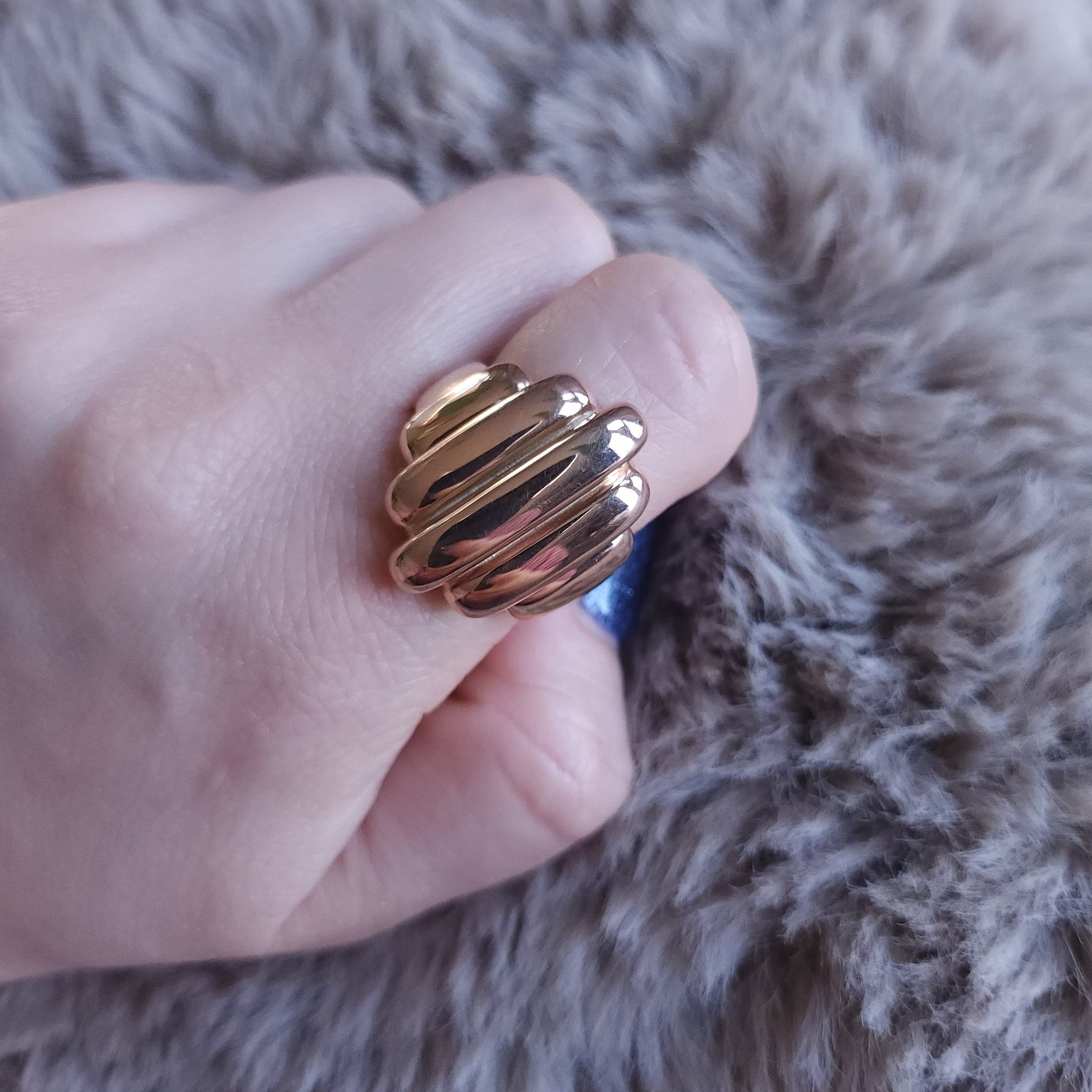 A tiered dome ring with bold symmetry and polished arcs - a standout piece with rhythmic dimension