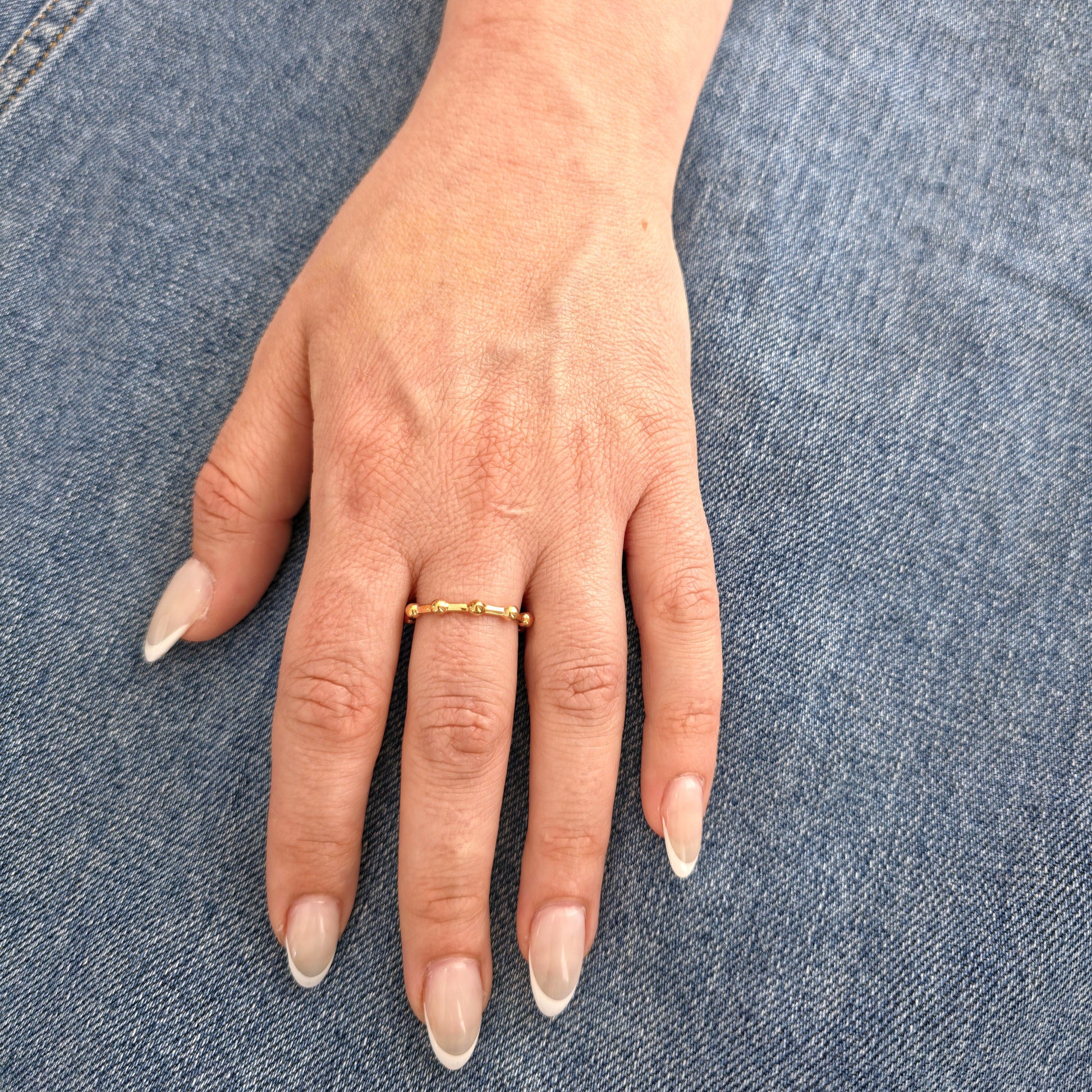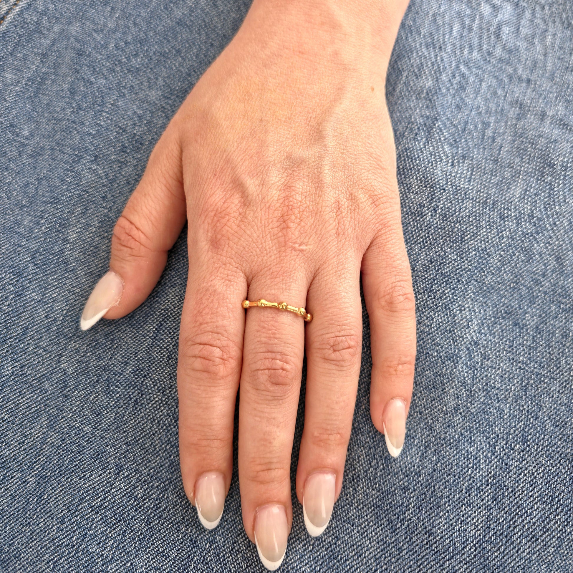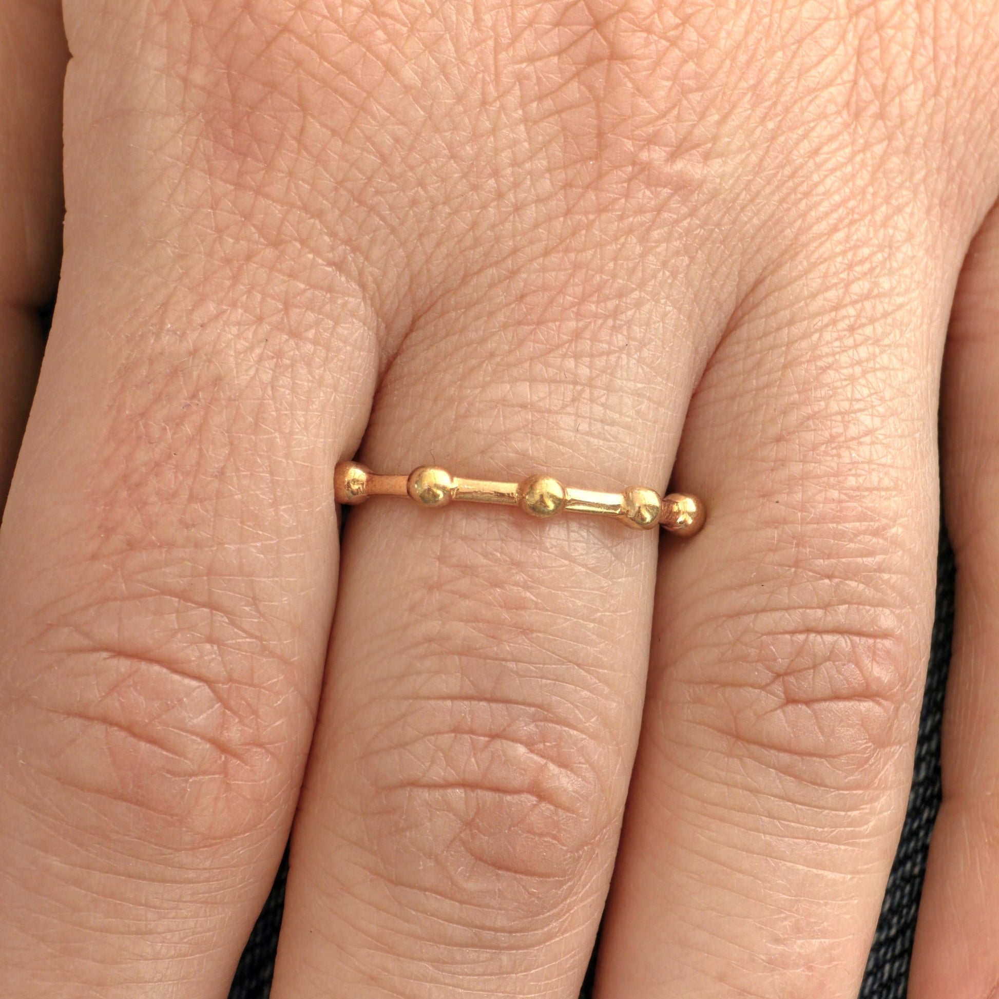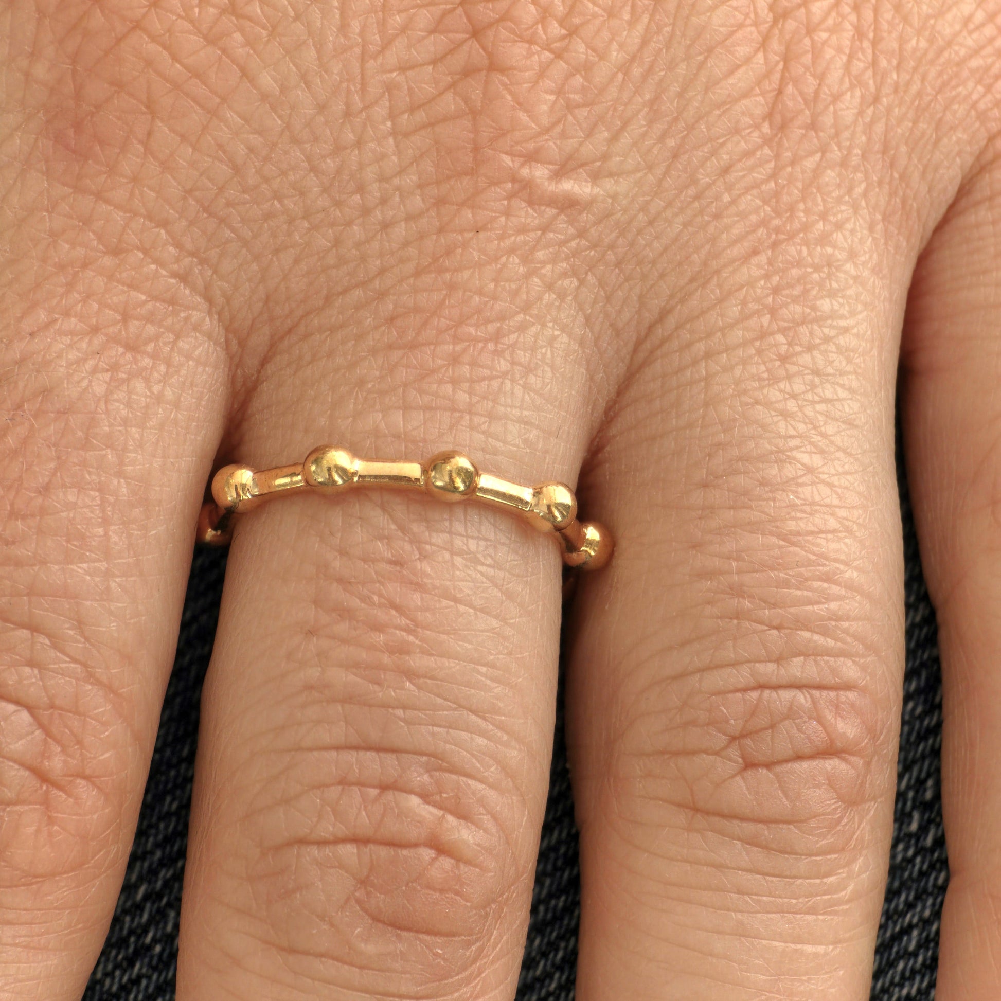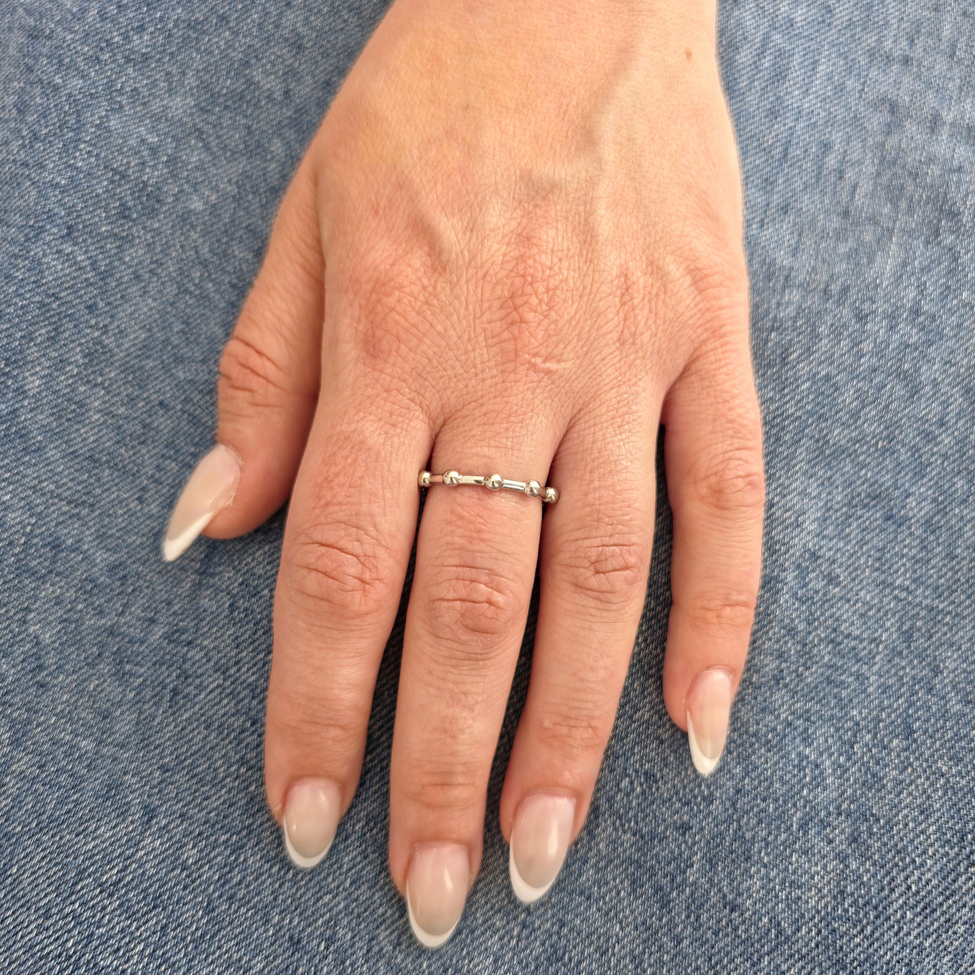 A delicate band with evenly spaced polished beads - minimalist with a touch of movement and charm