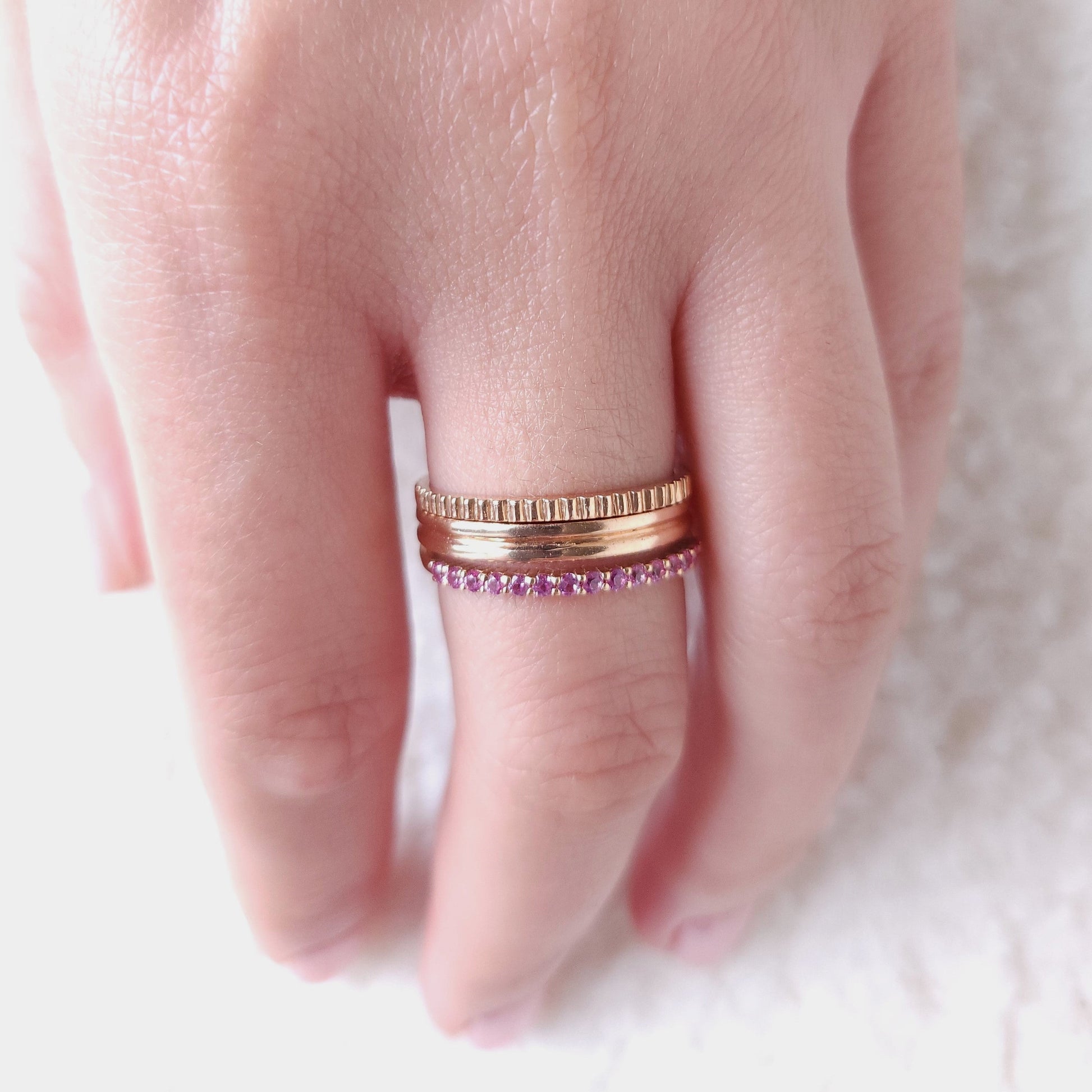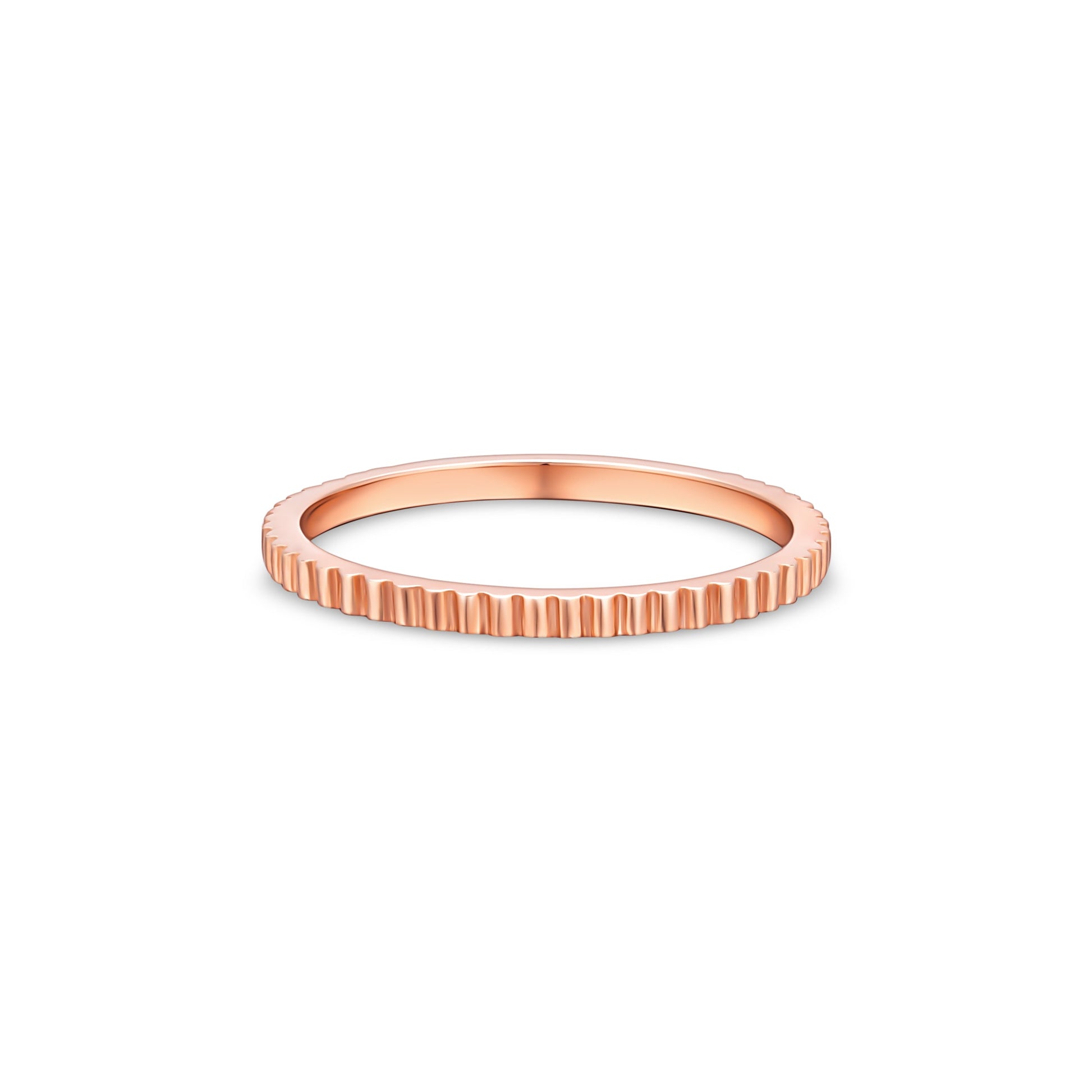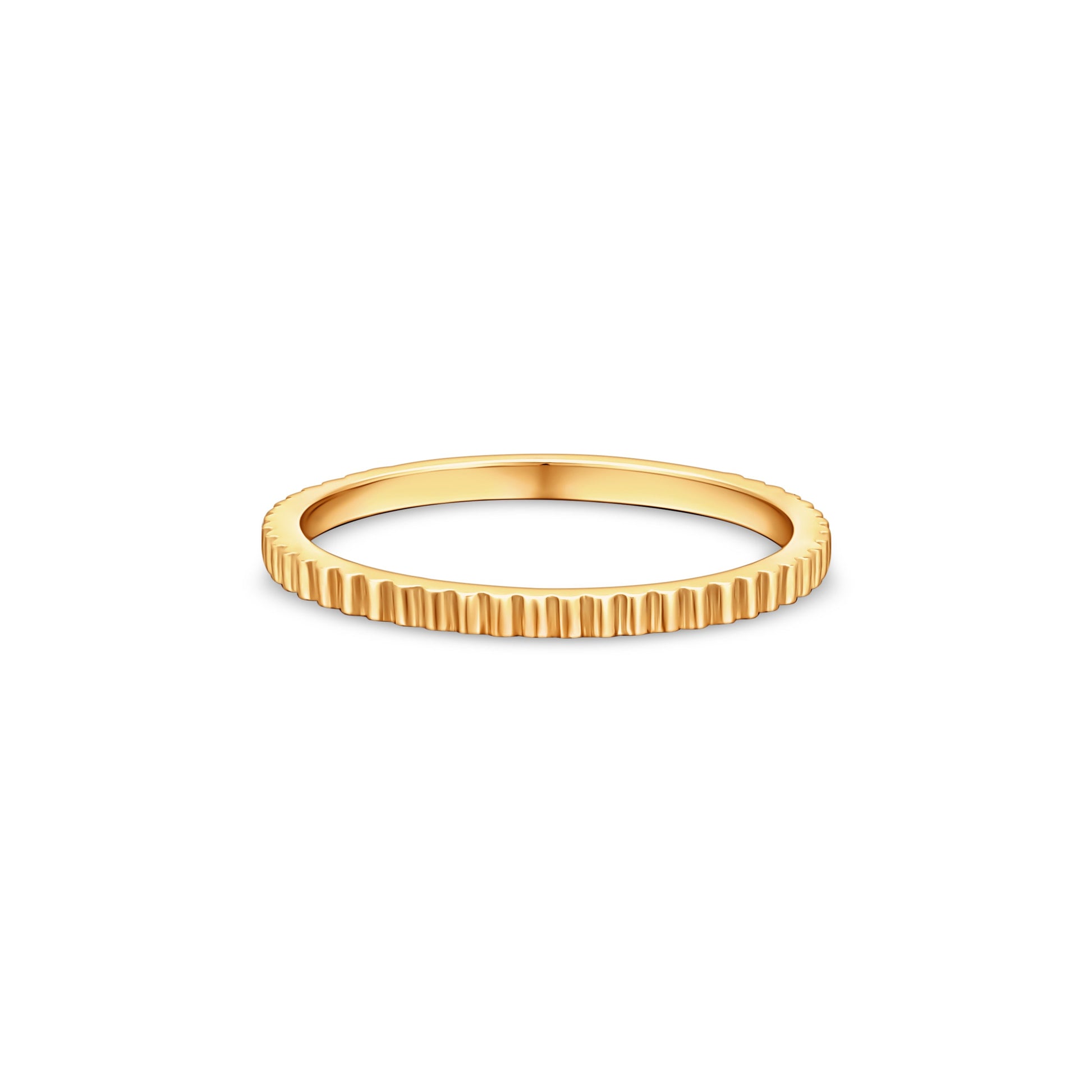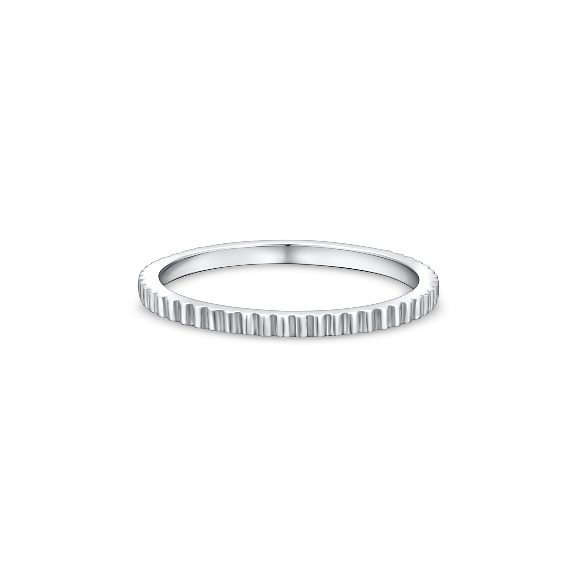 Sleek and minimalist, the Edge Mini ring features a continuous pattern of delicate notches-echoing the precision of a watch crown or milled edge. Worn solo or stacked, it adds a subtle layer of detail and texture to any look.