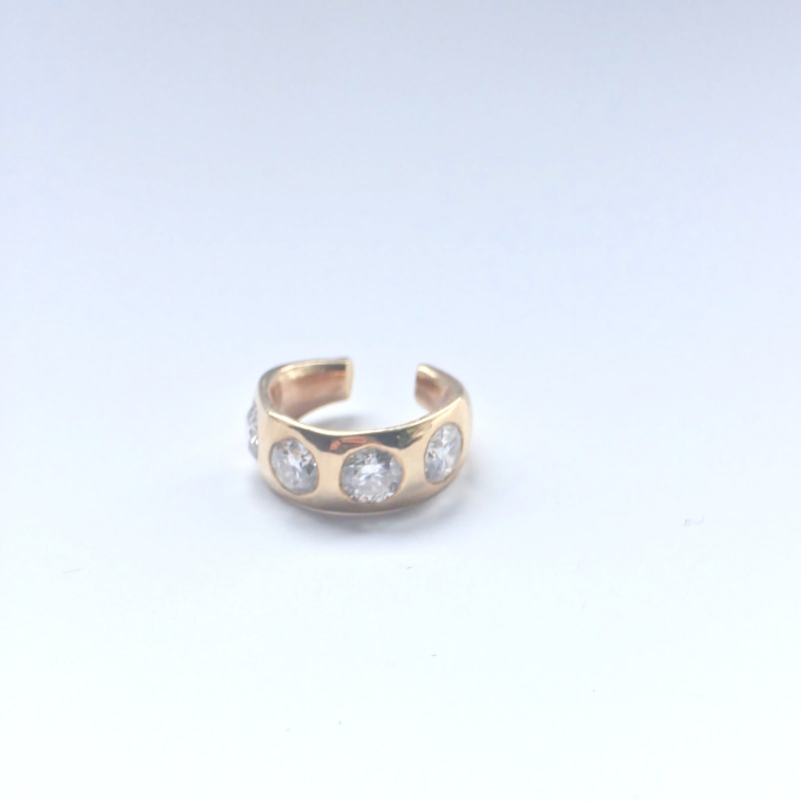 High-polish gold ear cuff with a bold curved silhouette and flush-set round gemstones.