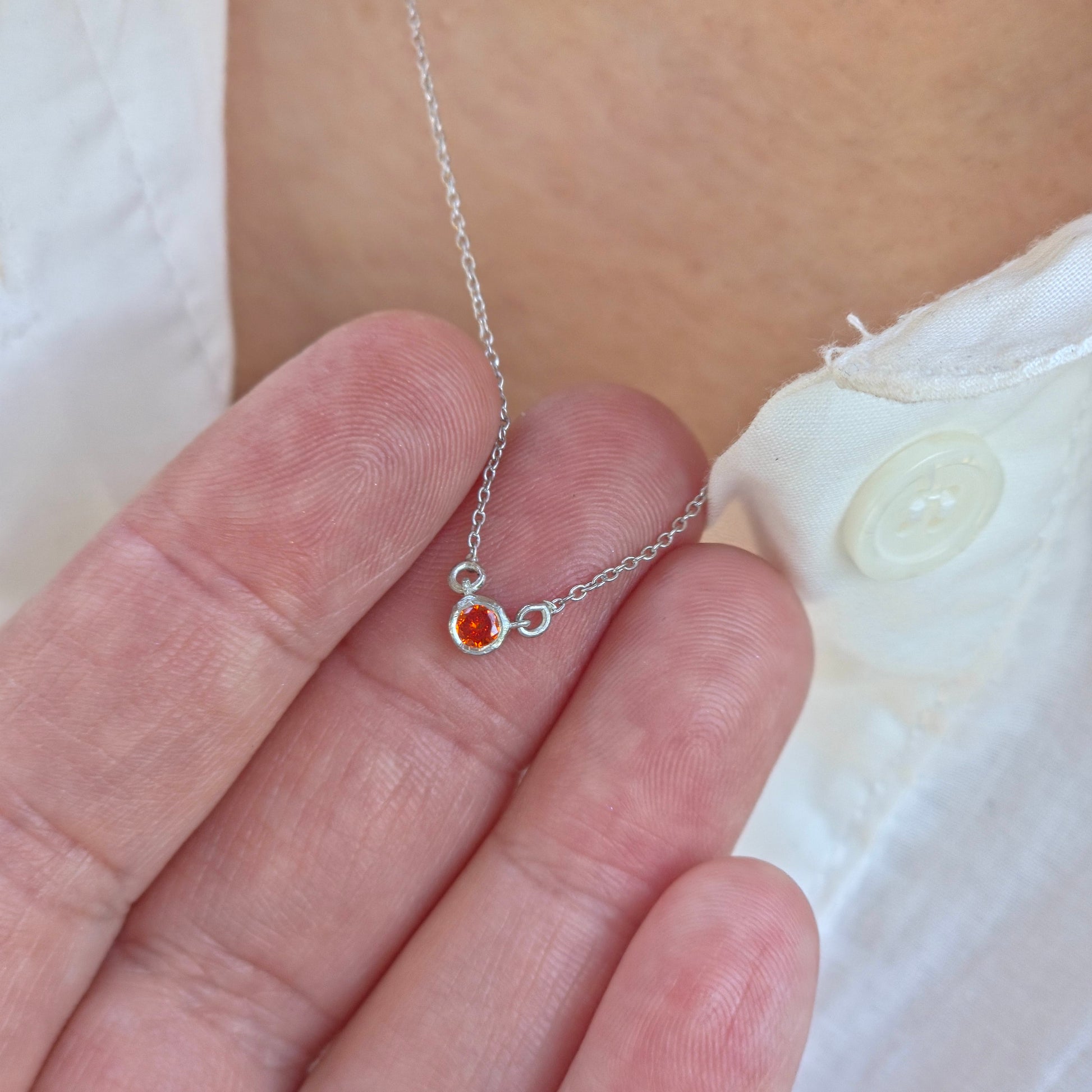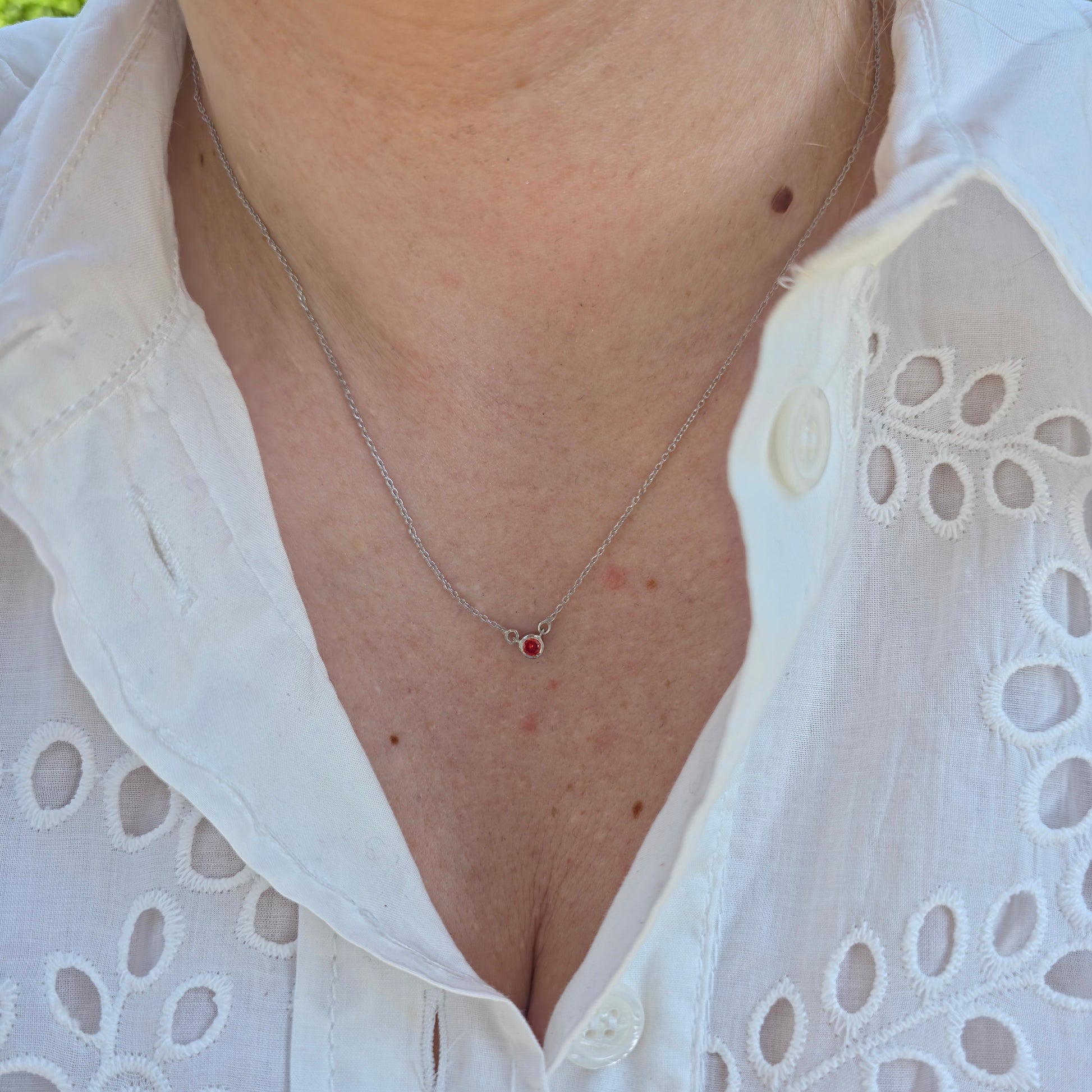 Minimalist solitaire chain necklace, featuring a bezel set gemstone