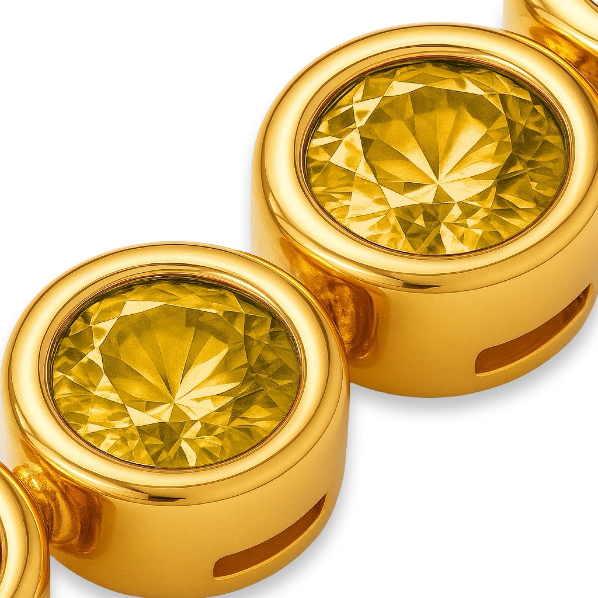 The Forma Tennis Necklace features a continuous row of bezel-set 3mm round gemstones in a clean, modern setting. Each stone is individually encased in gold, offering a smooth silhouette that balances structure with fluidity. A contemporary take on the classic tennis style, designed to sit comfortably around the neckline.