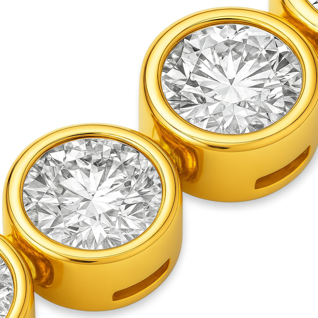 The Forma Tennis Necklace features a continuous row of bezel-set 3mm round gemstones in a clean, modern setting. Each stone is individually encased in gold, offering a smooth silhouette that balances structure with fluidity. A contemporary take on the classic tennis style, designed to sit comfortably around the neckline.