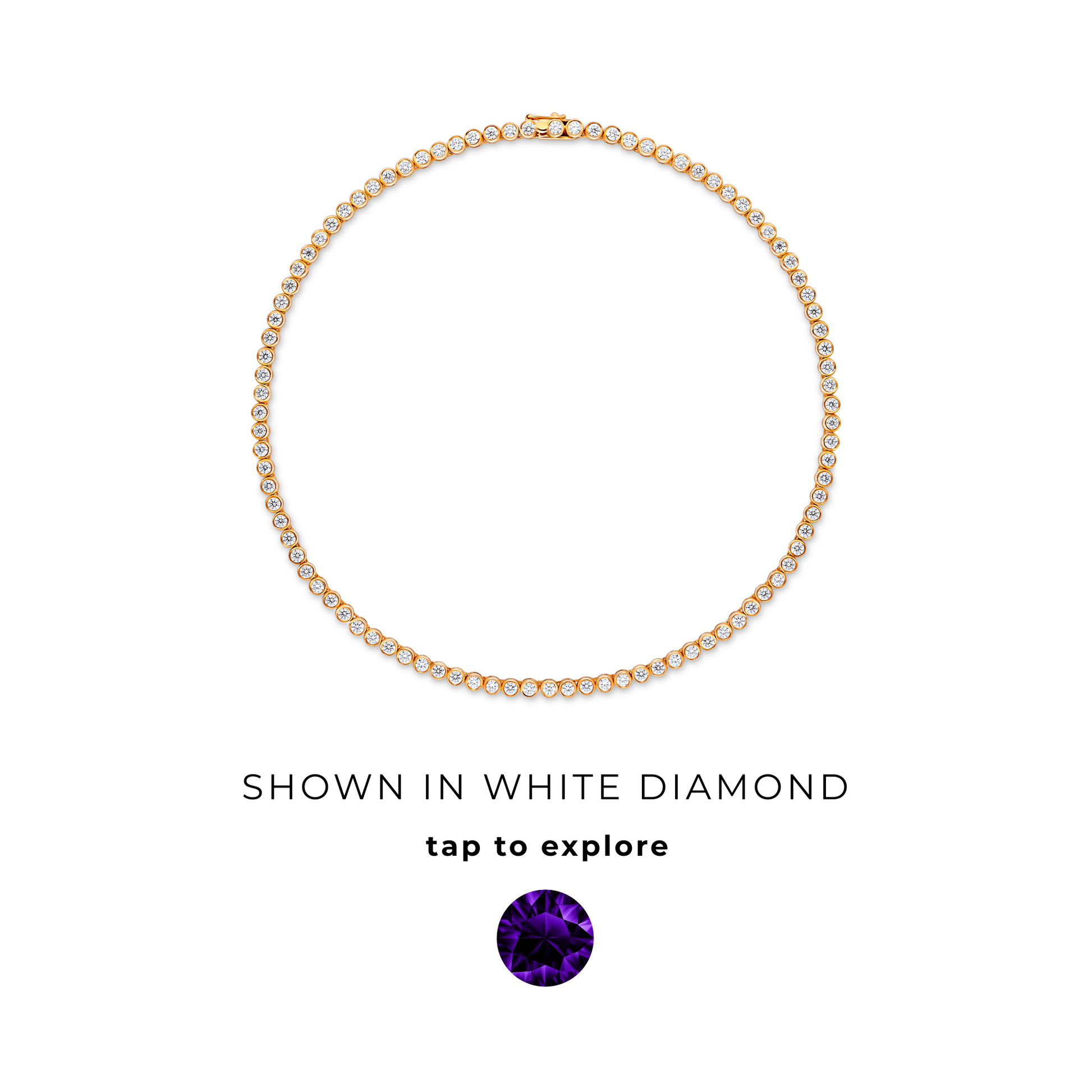 Bezel-set tennis necklace with round gemstones