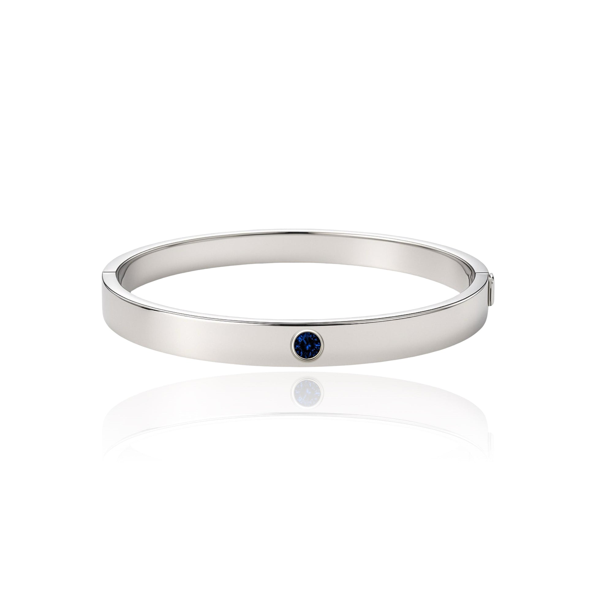Medium oval hinged bangle with a flat-edge profile and a single flush-set round gemstone.