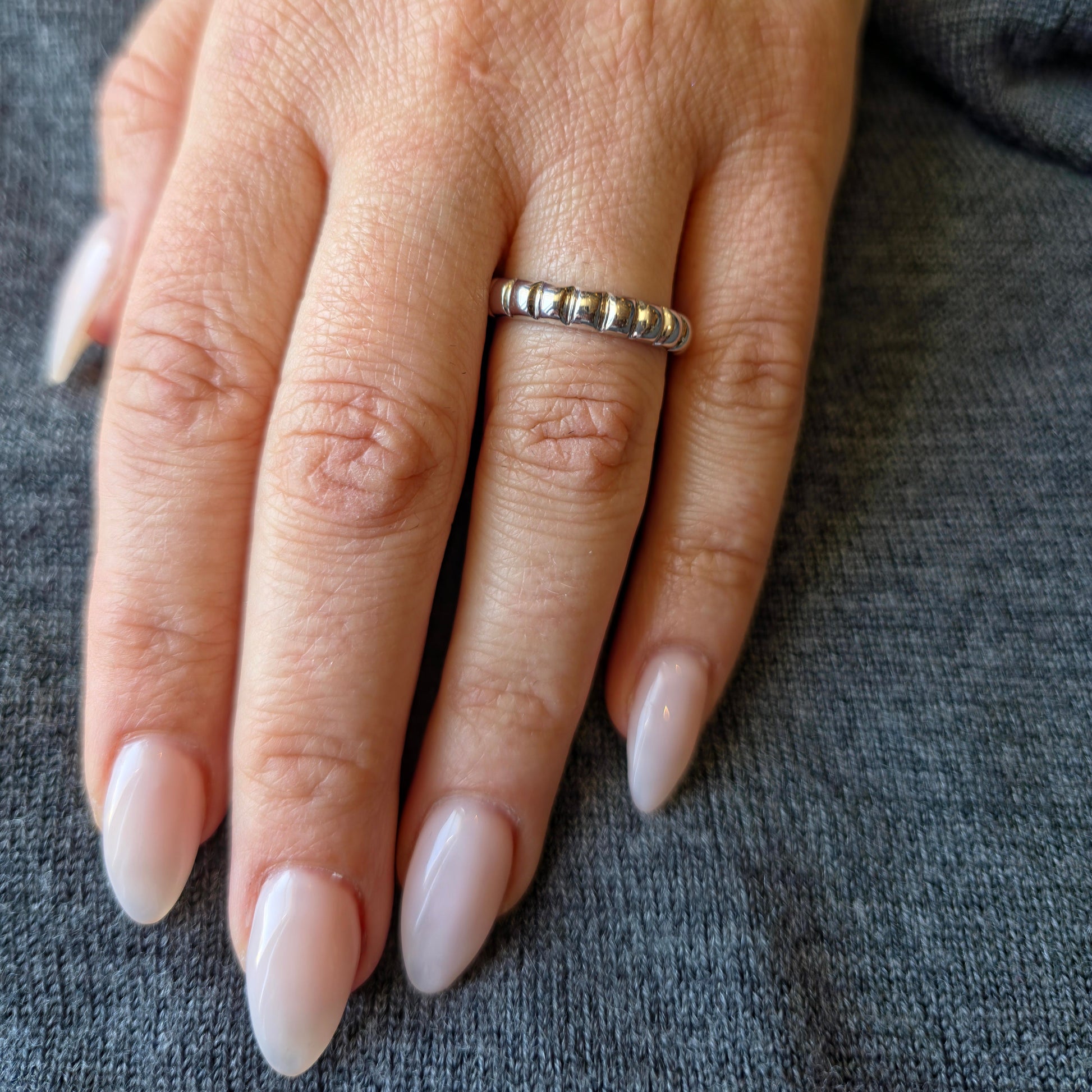 The Helix rings captivate with their curvy, segmented design, available in Mini, Midi and Maxi widths. Each piece showcases bold, rounded segments that enhance the ring’s curvaceous appeal, blending modern style with tactile sophistication. The Mini, at 4 mm, is subtly elegant, perfect for those who value refined aesthetics. The Midi, at 6 mm, offers a balanced blend of curve and comfort, ideal for everyday wear. The Maxi, at 9 mm, makes a powerful statement with its pronounced curves, designed for those who desire standout accessories. Crafted in various precious metals, the Helix rings are a testament to exquisite craftsmanship, offering a luxurious addition to any jewellery collection. Choose the size that best suits your style and enjoy the unique curvature of the Helix ring.