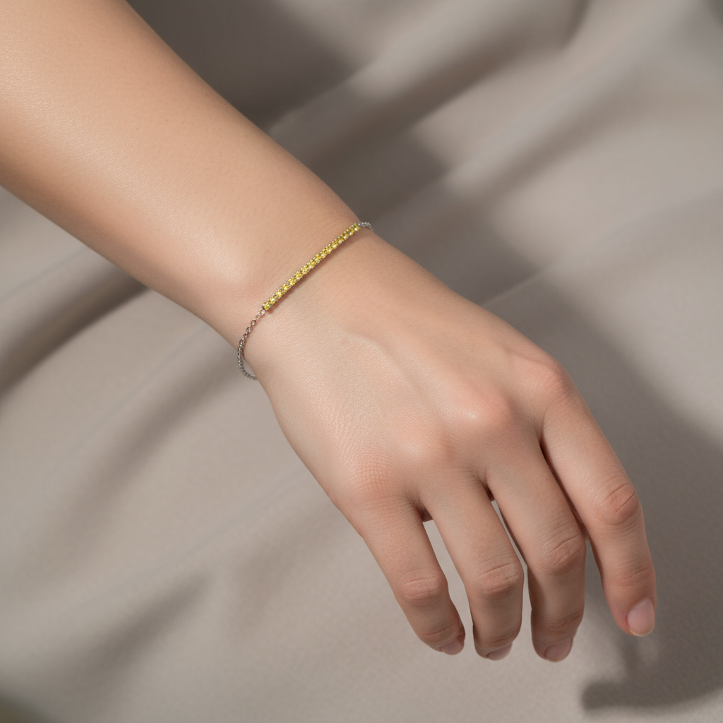 Shown in Yellow Sapphire, this bracelet is available in all Atlas Carré signature colours.