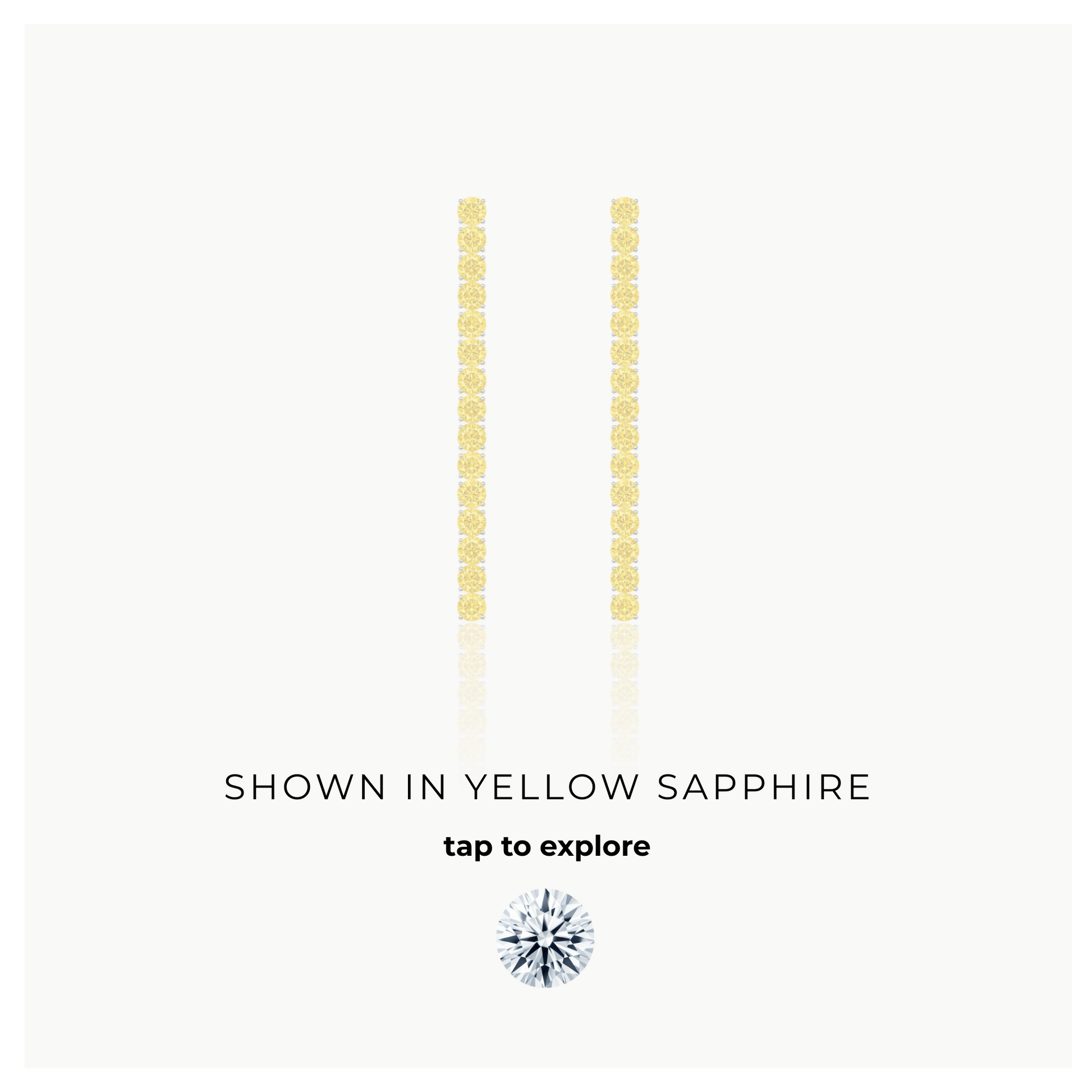 "Classic, mid-length drop earrings with uniform round gemstones, prong-set "