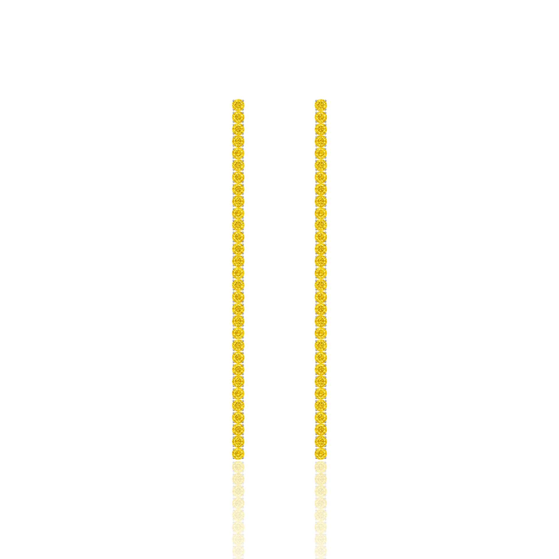 "Long linear earrings with closely set gemstones in a continuous articulated formation. "