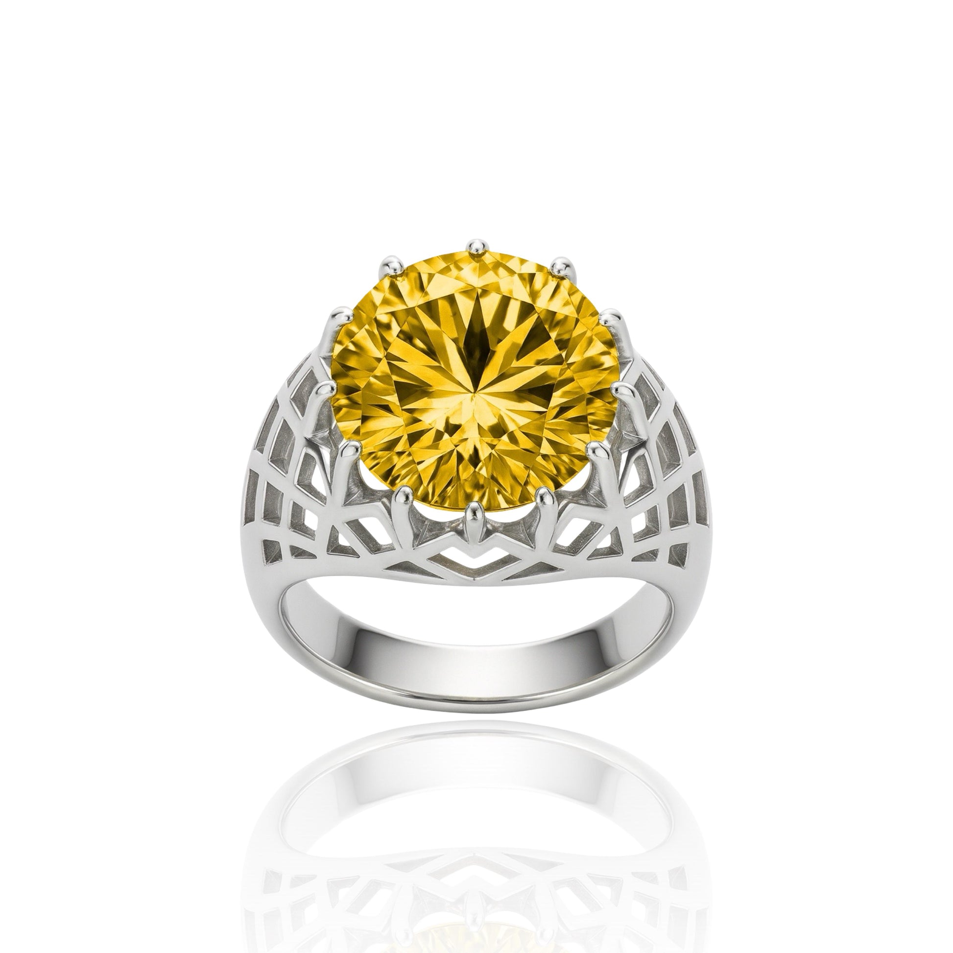 Regal openwork ring with lattice gallery and sculptural gemstone crown
