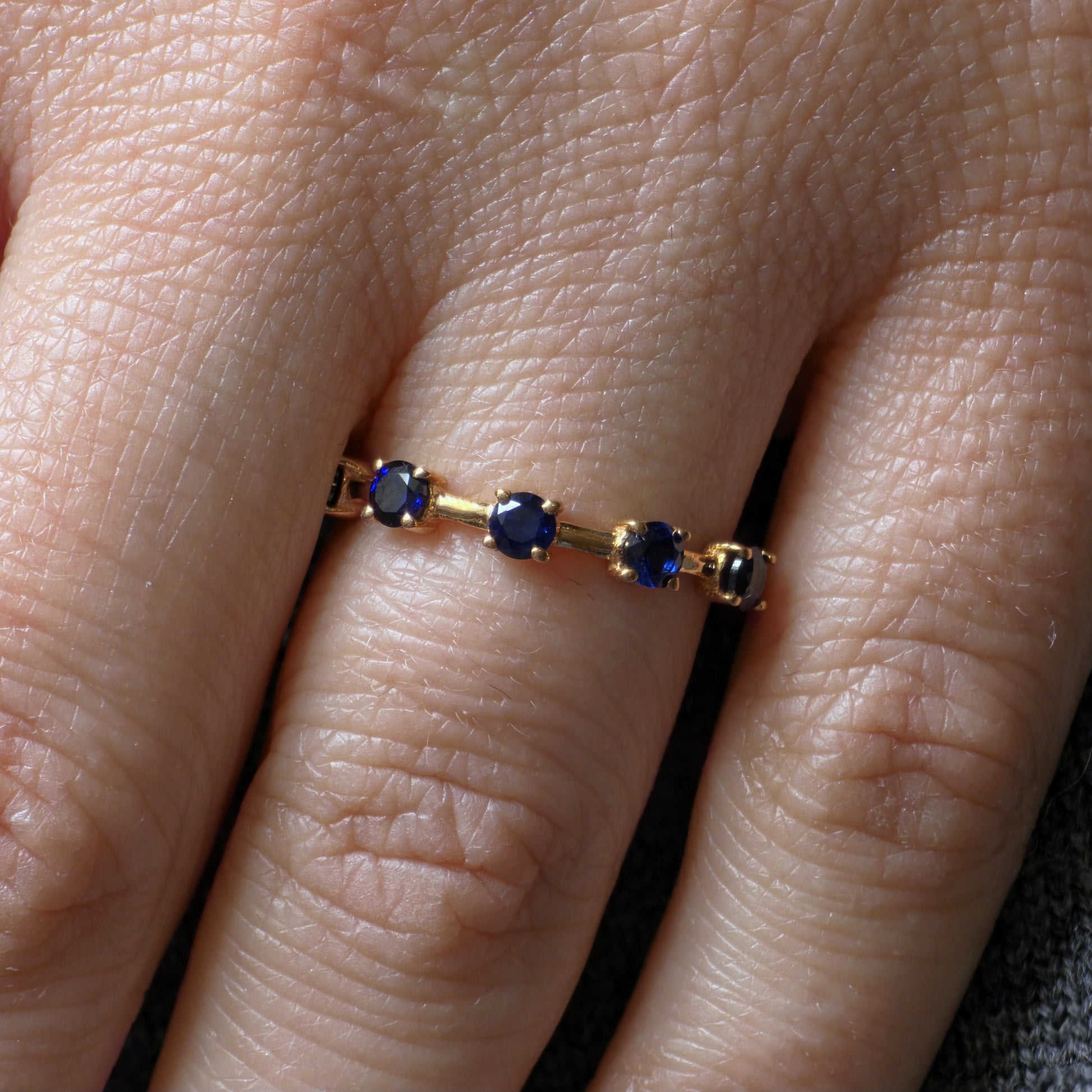 A twist on the classic eternity ring, a half station ring featuring 5 prong set gemstones, set with a negative space between them