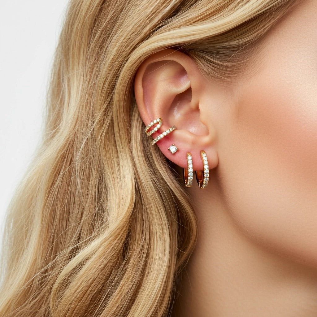 A whisper of light worn close to the ear. The Linea Mini Ear Cuff brings effortless sparkle with a minimalist line of brilliance - refined, precise, and made to catch the light in subtle motion. Sold as a single.