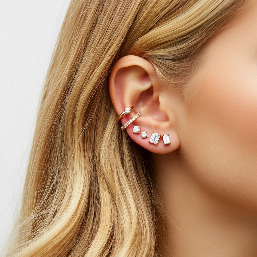 A whisper of light worn close to the ear. The Linea Mini Ear Cuff brings effortless sparkle with a minimalist line of brilliance - refined, precise, and made to catch the light in subtle motion. Sold as a single.