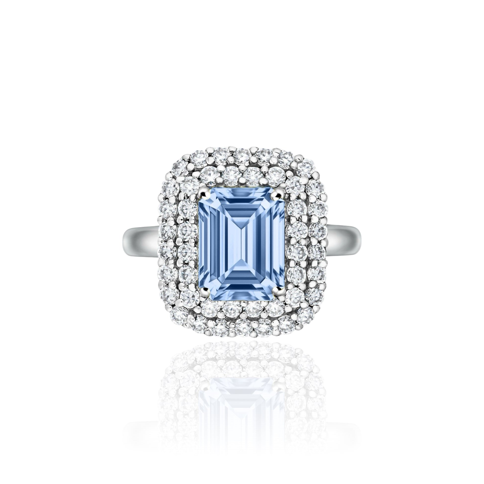 Nexus Double Halo Ring – Light Blue Aquamarine