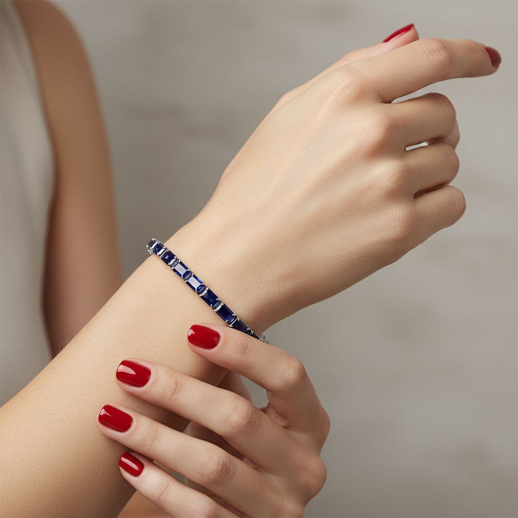 The Nexus Tennis Bracelet reimagines timeless elegance with a sculptural twist. Set with emerald cut gemstones in a continuous four-prong design, it delivers refined brilliance and symmetry. The classic box clasp ensures a secure fit while maintaining the fluid silhouette. A versatile essential that transitions effortlessly from day to evening.