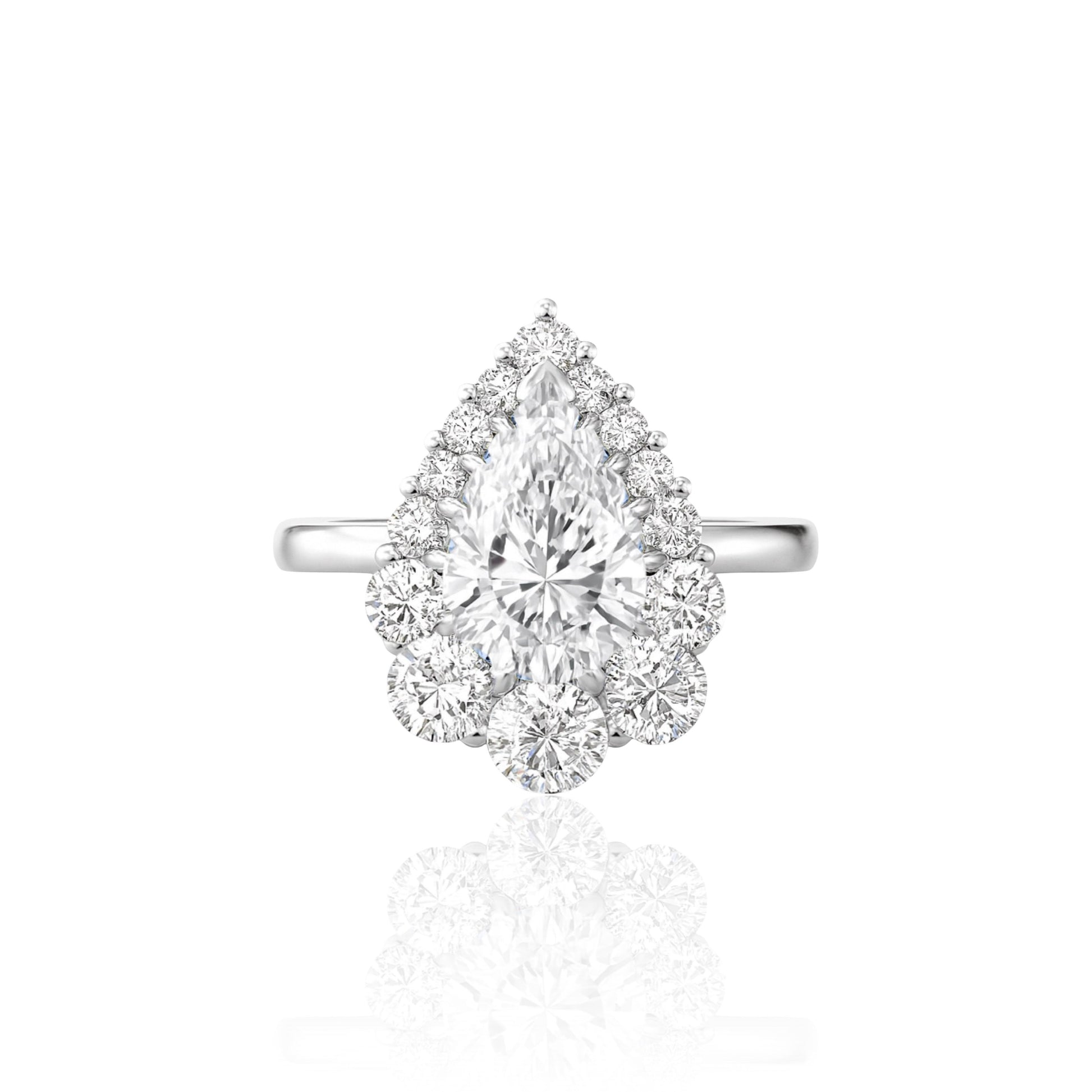 The Nova Halo Ring offers a refined take on classic radiance. At the centre, a pear-cut gemstone is encircled by a delicate halo of diamonds arranged in a graceful gradient - larger at the base, tapering upward. This subtle graduation enhances the stone’s natural shape while adding softness and light. Elevated just above the band, the effect is timeless yet artful. Available in all Atlas Carré signature colours.