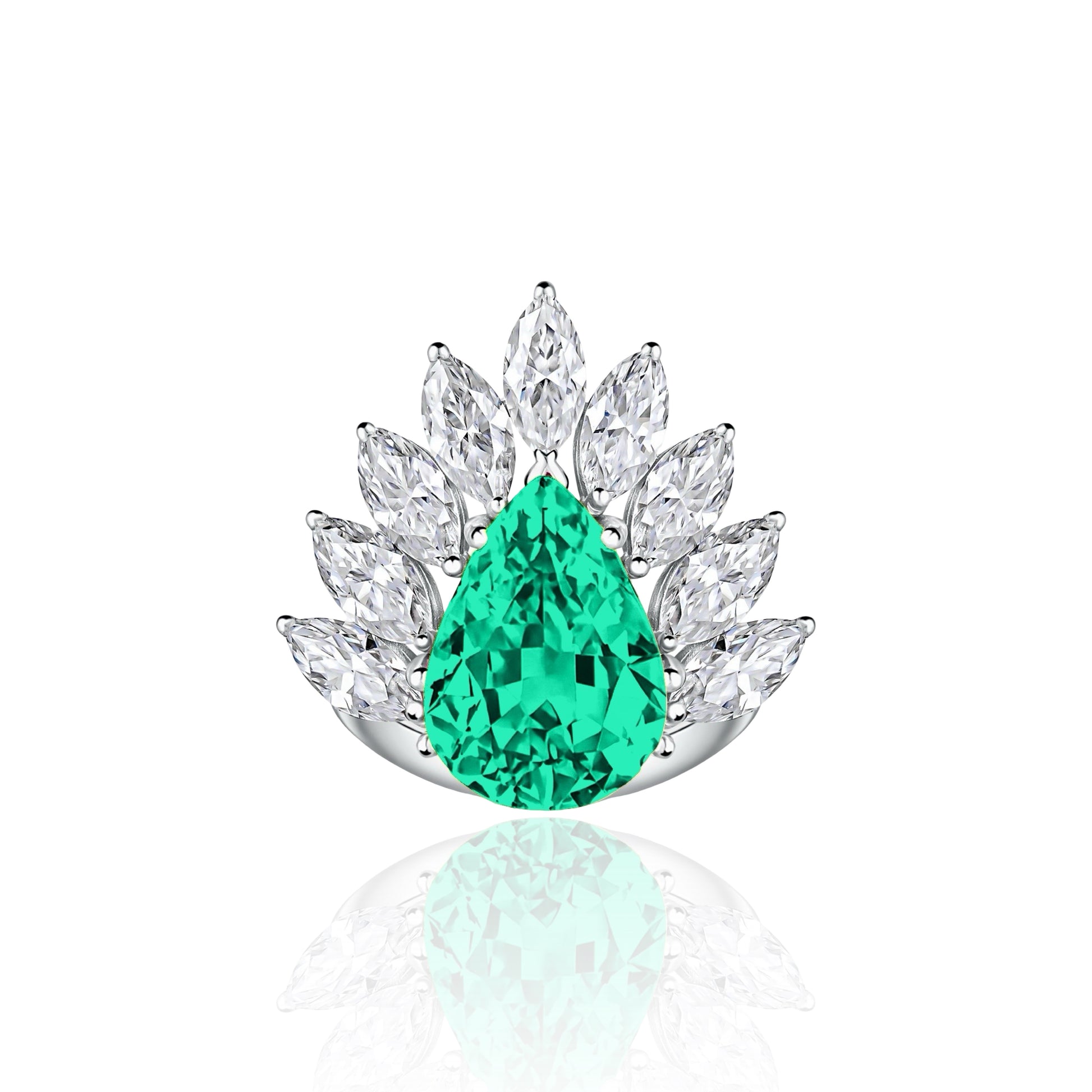 The Nova Pavone Ring is pure theatrical beauty. A vivid pear-cut gemstone rises above the band, encircled by a dramatic burst of marquise-cut diamonds arranged in a sweeping, feathered silhouette. Inspired by the peacock’s fan and designed for centre stage, this ring is unapologetically radiant - a piece that turns light and heads alike. Available in all Atlas Carré signature colours.