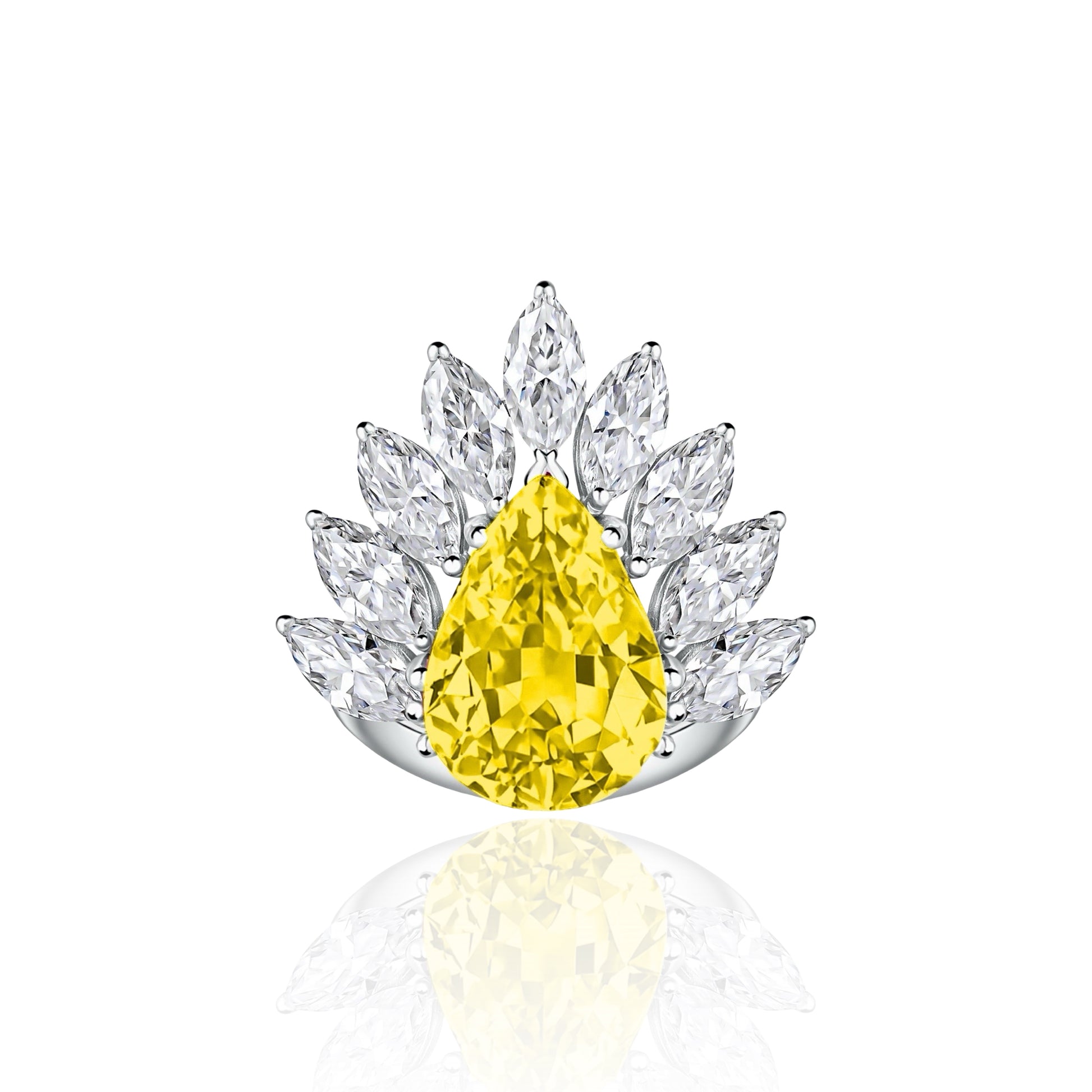 The Nova Pavone Ring is pure theatrical beauty. A vivid pear-cut gemstone rises above the band, encircled by a dramatic burst of marquise-cut diamonds arranged in a sweeping, feathered silhouette. Inspired by the peacock’s fan and designed for centre stage, this ring is unapologetically radiant - a piece that turns light and heads alike. Available in all Atlas Carré signature colours.