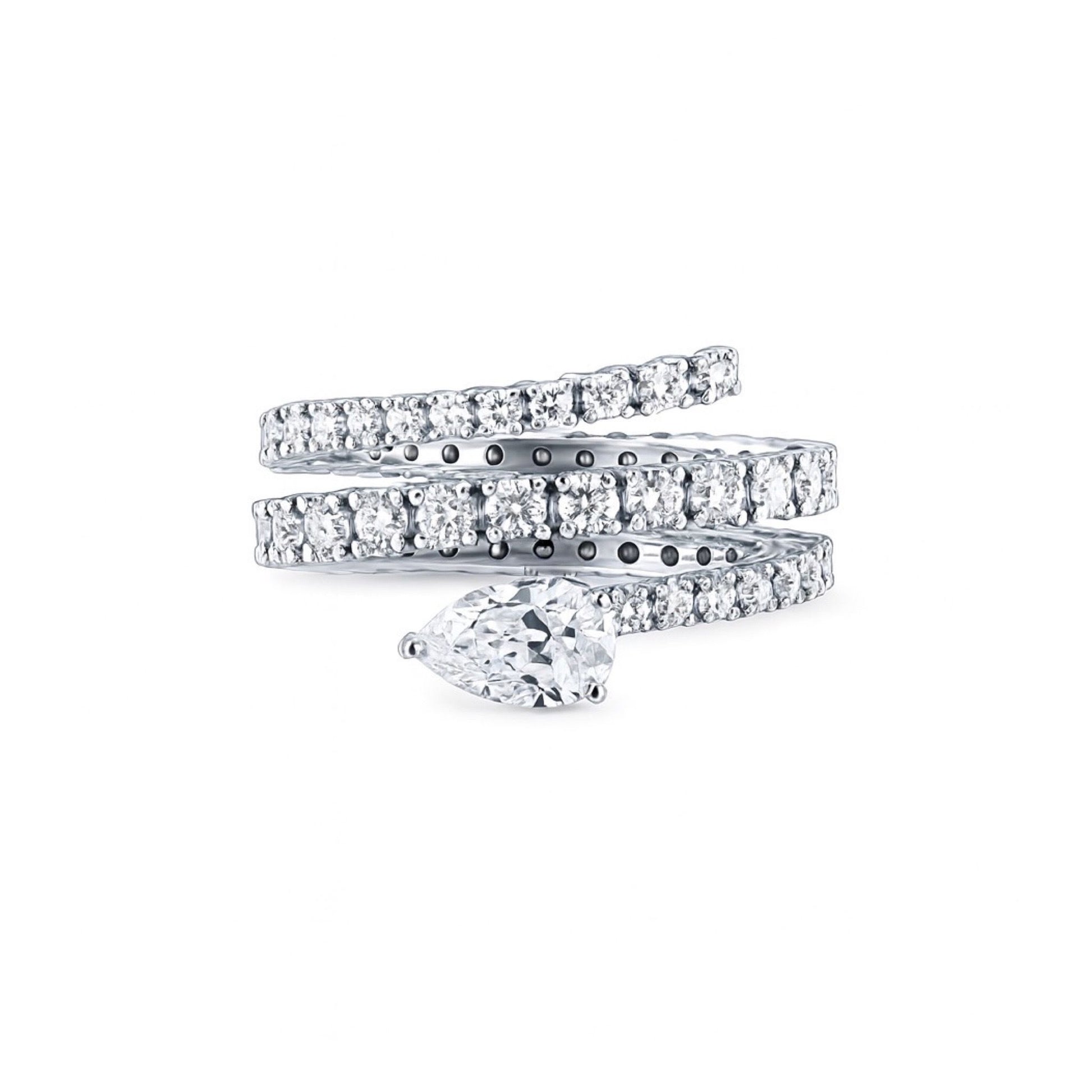 Coiled pear-cut ring with a diamond pavé sculptural wrap band