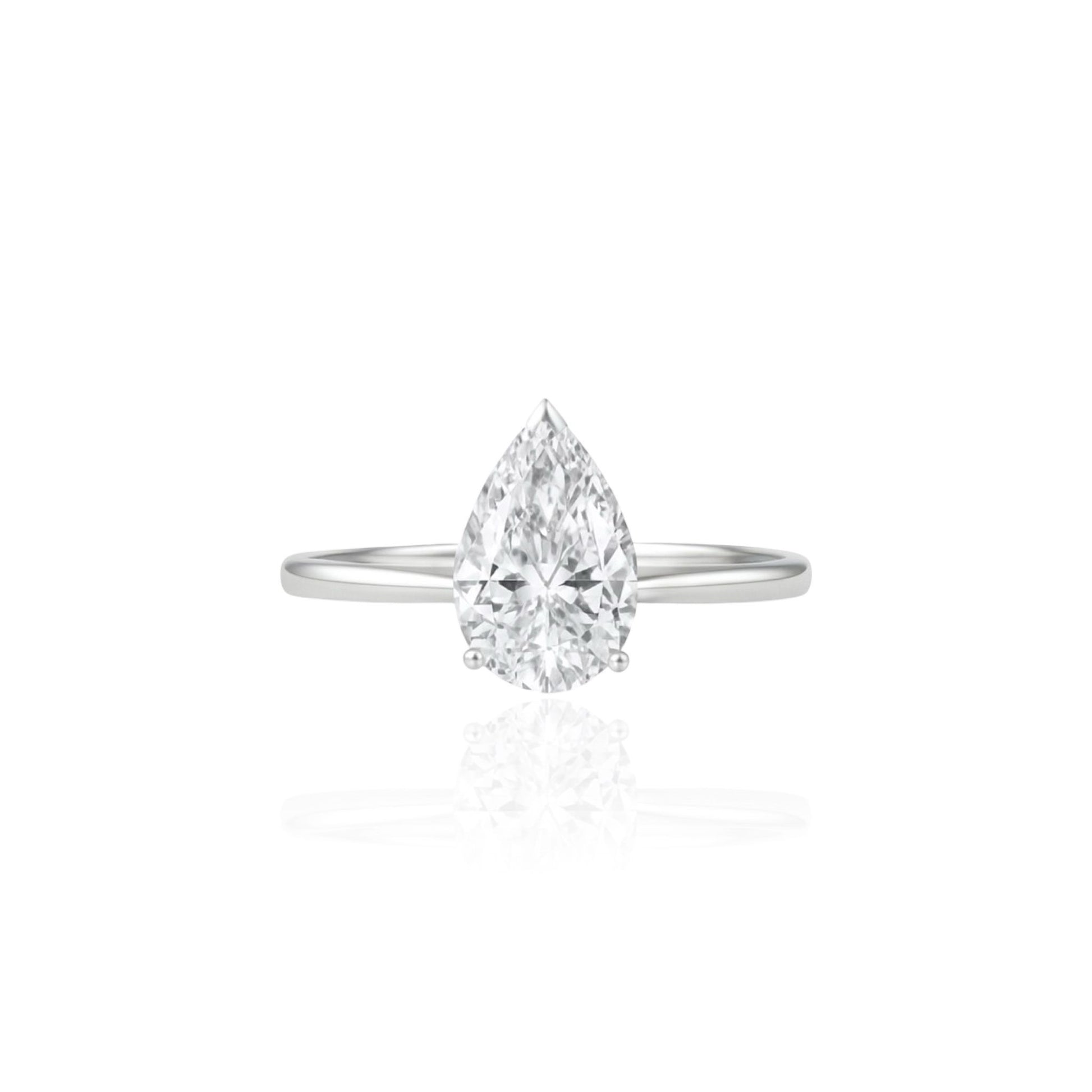 Pear-cut solitaire with delicate band and luminous grace