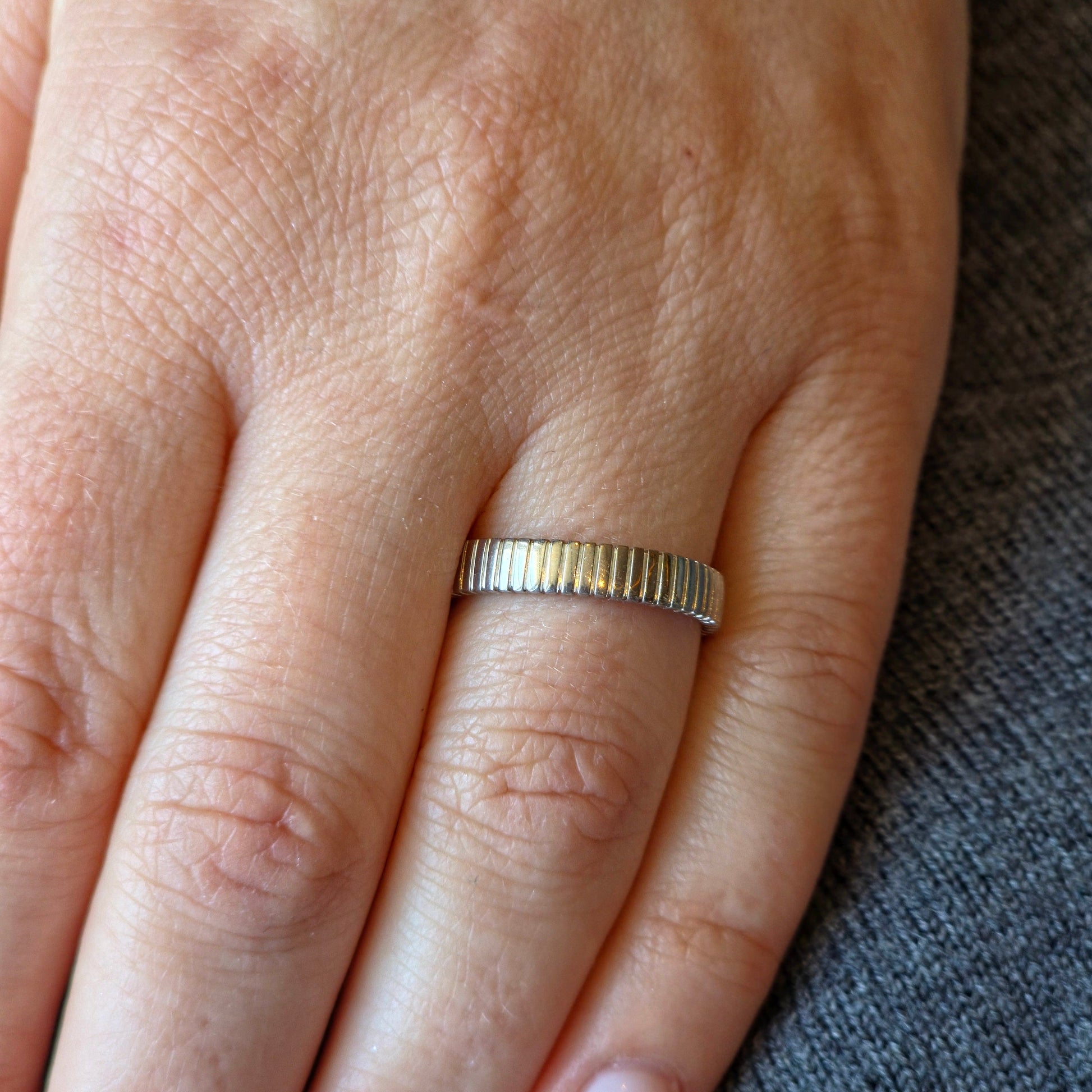 A classic-width band with clean vertical ridges - refined, architectural, quietly bold