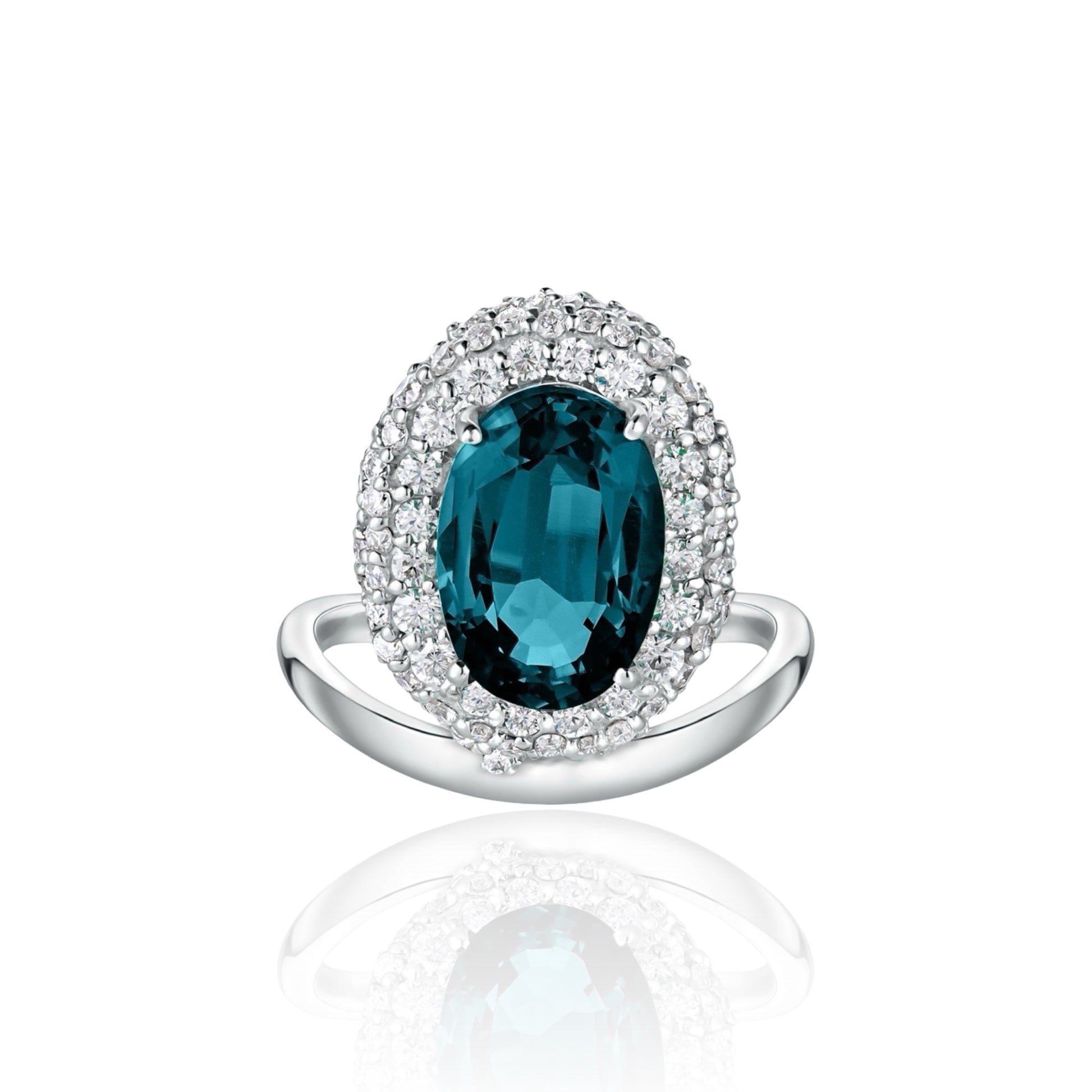 The Velara Crest Ring is a striking composition of light, height, and asymmetry. A luminous oval gemstone is framed by a mosaic-set pavé surround - a seamless surface of miniature diamonds arranged in an organic, multidimensional field. Perched just above the polished band in an offset position, the centre stone appears to hover, giving the design an airy, architectural elegance. Bold yet refined, this ring is a modern take on regal tradition. Available in all Atlas Carré signature colours, White Diamond excepted.