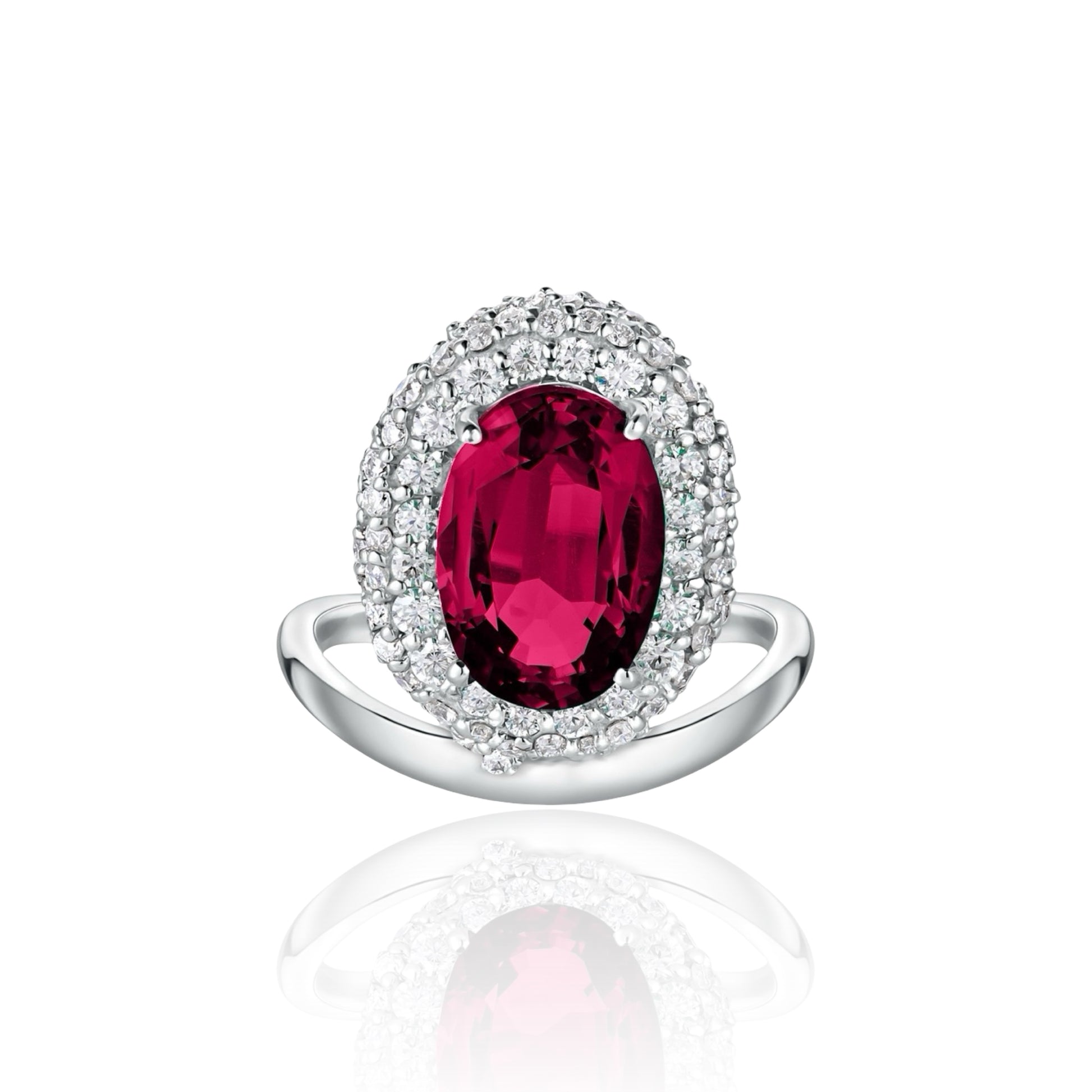 The Velara Crest Ring is a striking composition of light, height, and asymmetry. A luminous oval gemstone is framed by a mosaic-set pavé surround - a seamless surface of miniature diamonds arranged in an organic, multidimensional field. Perched just above the polished band in an offset position, the centre stone appears to hover, giving the design an airy, architectural elegance. Bold yet refined, this ring is a modern take on regal tradition. Available in all Atlas Carré signature colours, White Diamond excepted.