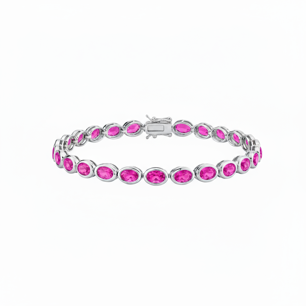 A refined tennis bracelet featuring oval-cut gemstones set in seamless bezels