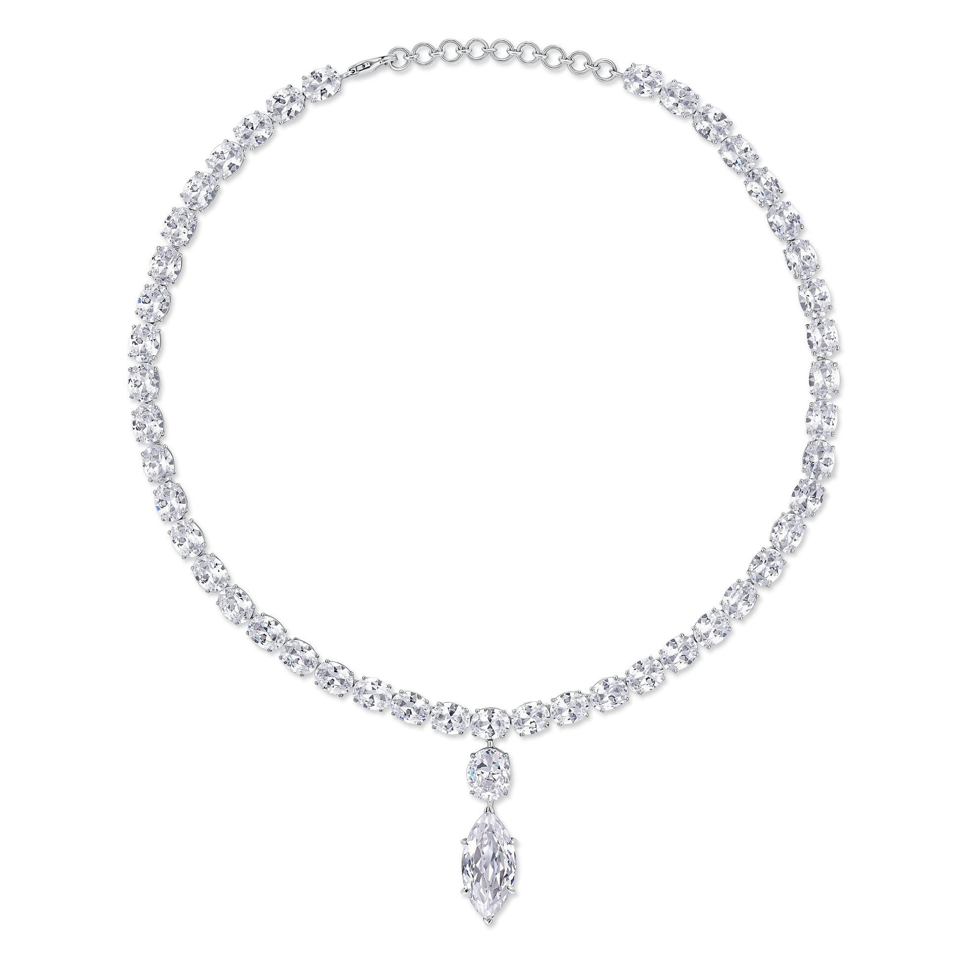 Bold centrepiece necklace with an oval and marquise drop and oval-cut gemstones.