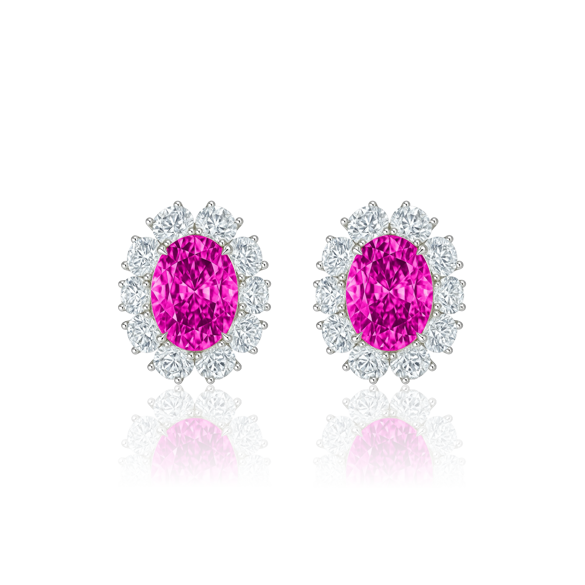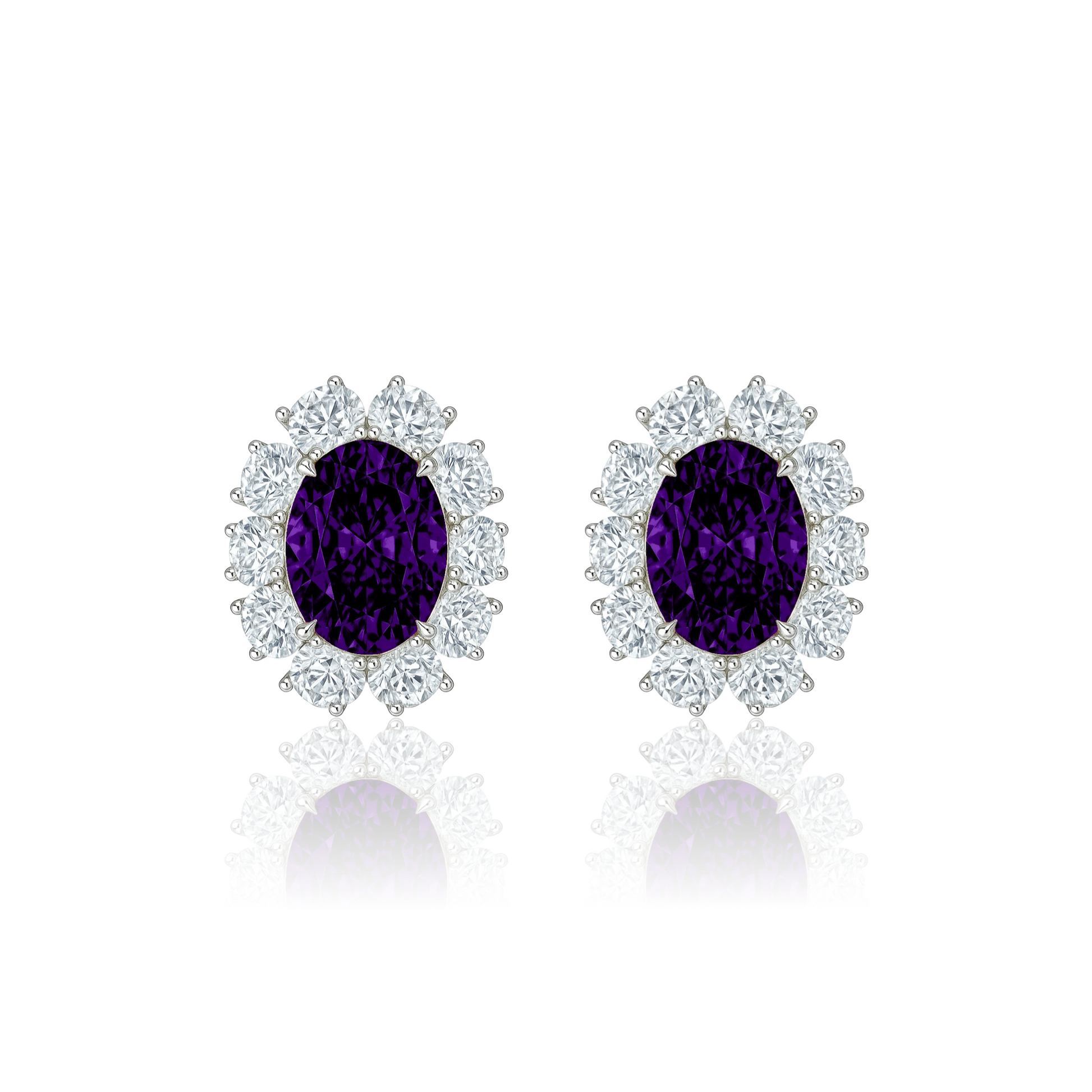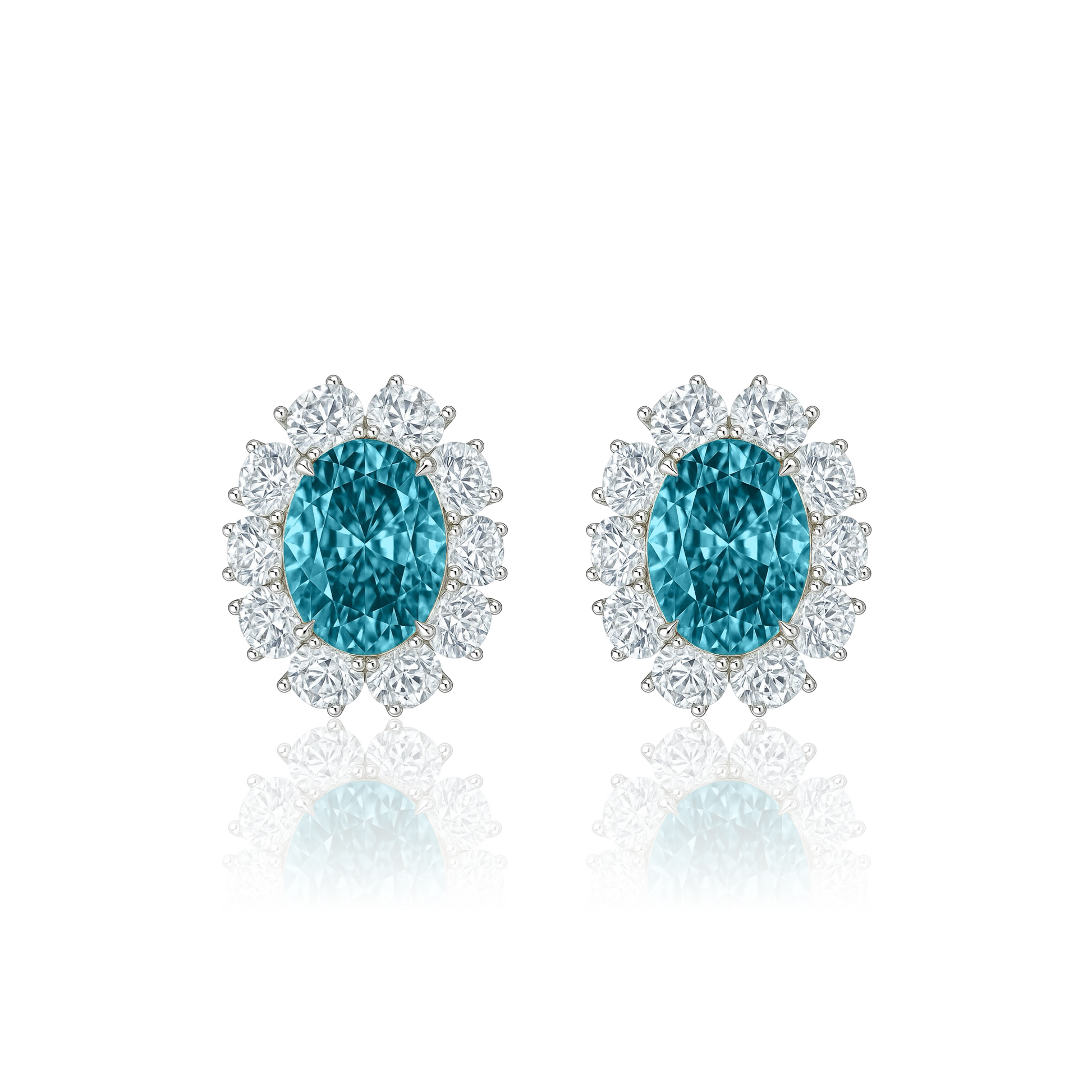 A timeless design reimagined with bold proportions and sculptural clarity. Each earring features an oval centre gemstone surrounded by a luminous halo of brilliant diamonds - a radiant frame that amplifies colour, contrast, and light. Statement-worthy yet eternally refined, this Atelier piece is crafted to captivate. Can be made in all Atlas Carré signature colours, by request.