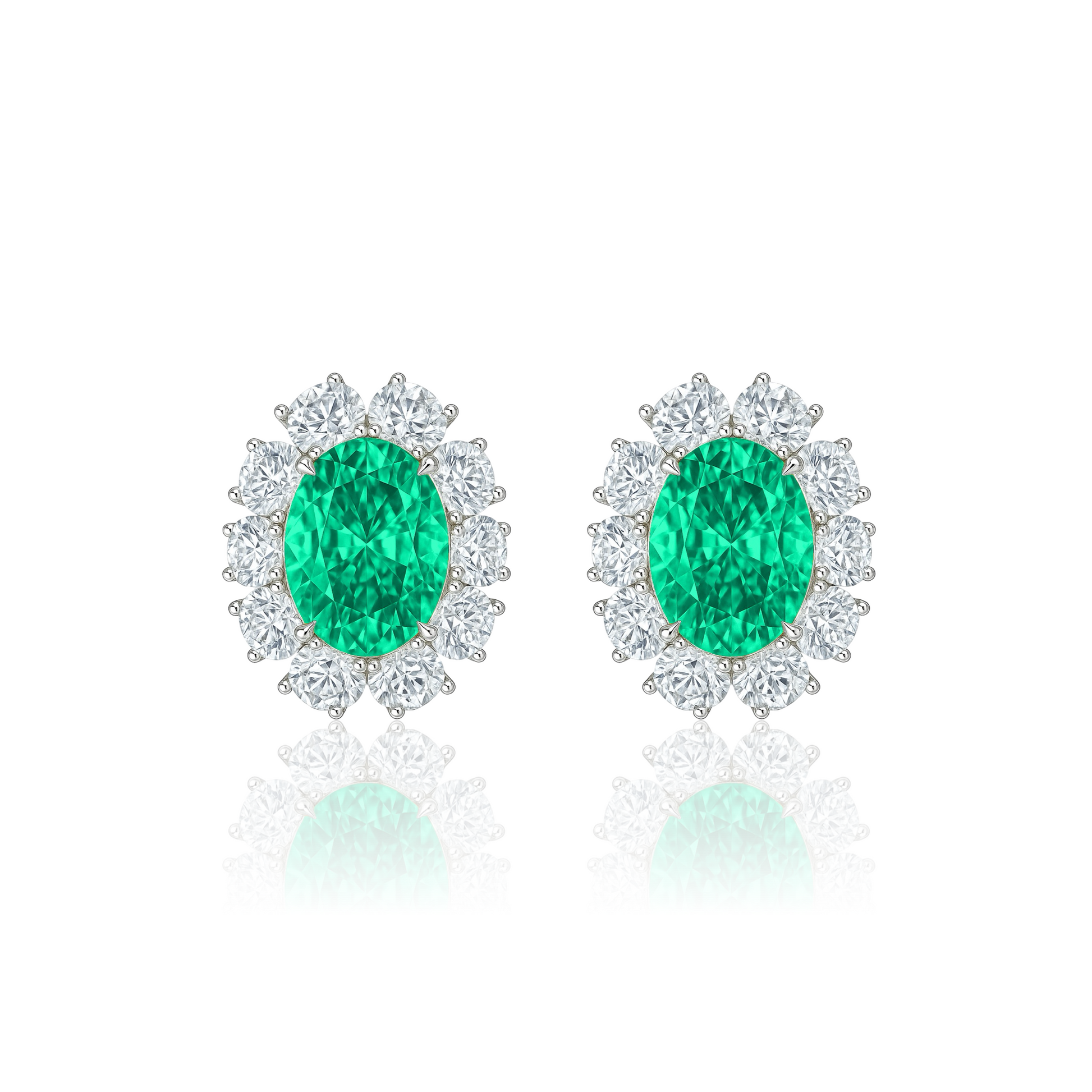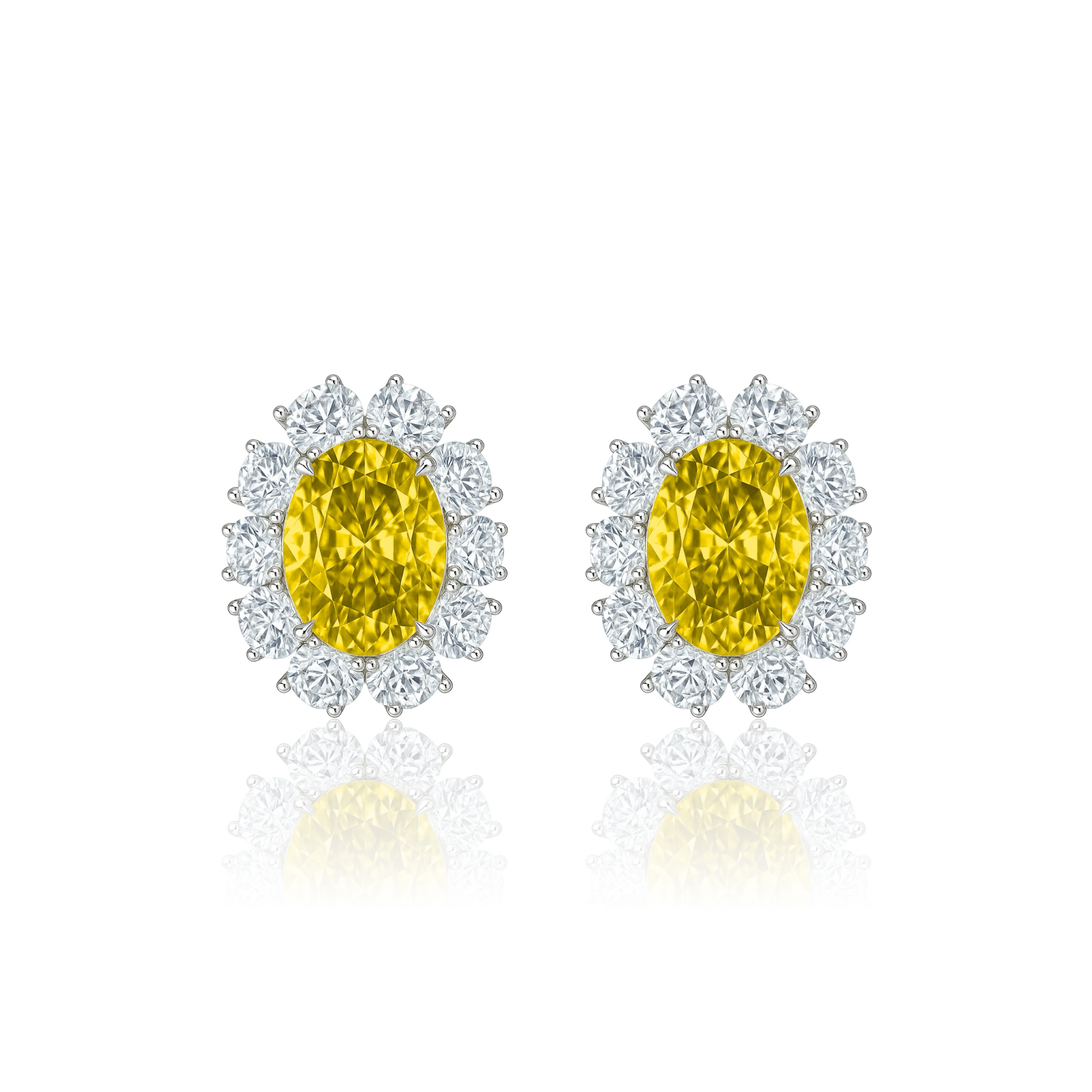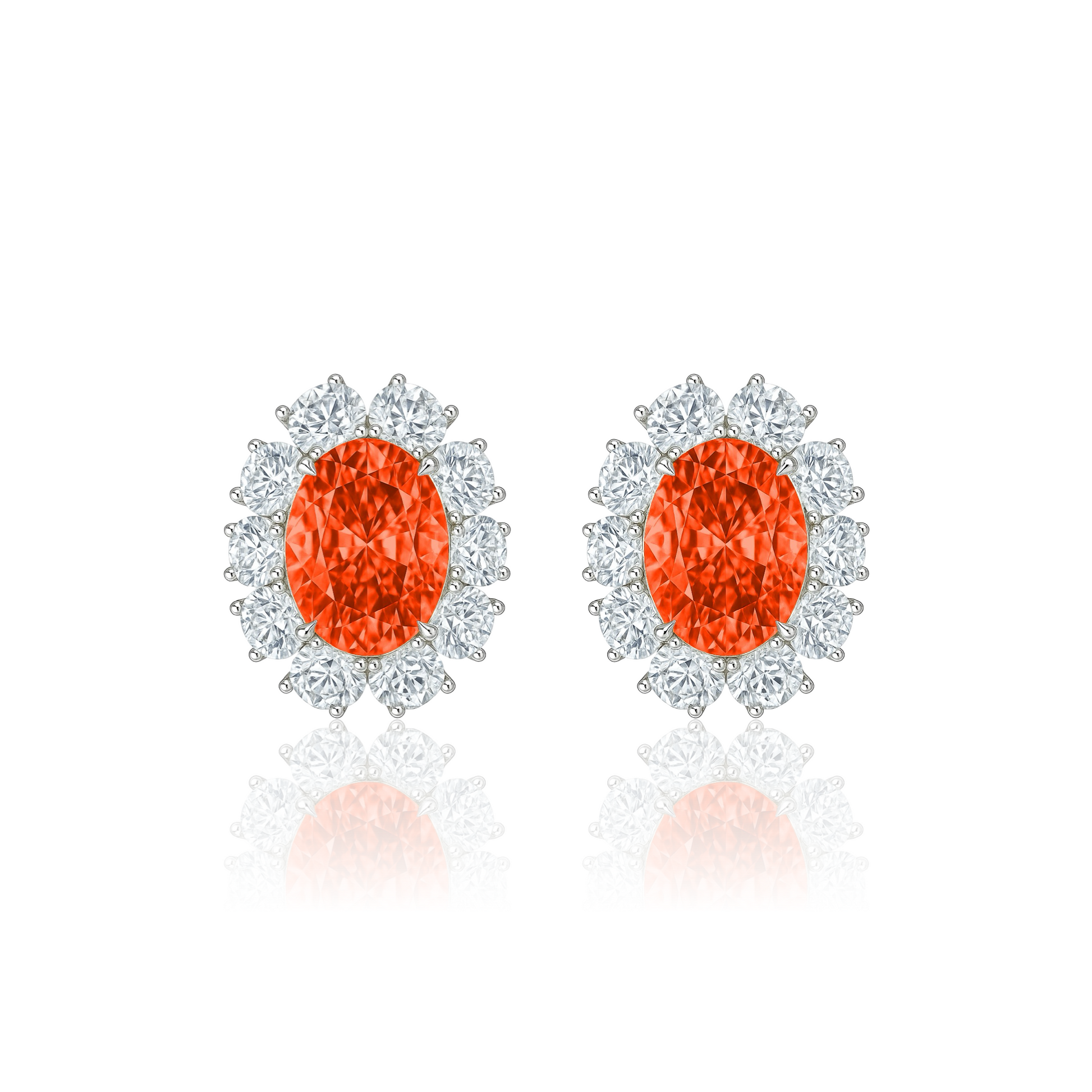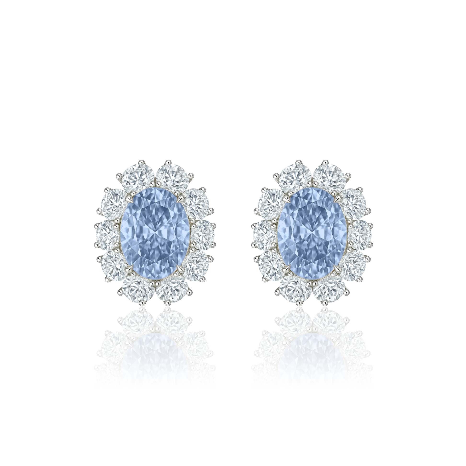 A timeless design reimagined with bold proportions and sculptural clarity. Each earring features an oval centre gemstone surrounded by a luminous halo of brilliant diamonds - a radiant frame that amplifies colour, contrast, and light. Statement-worthy yet eternally refined, this Atelier piece is crafted to captivate. Can be made in all Atlas Carré signature colours, by request.