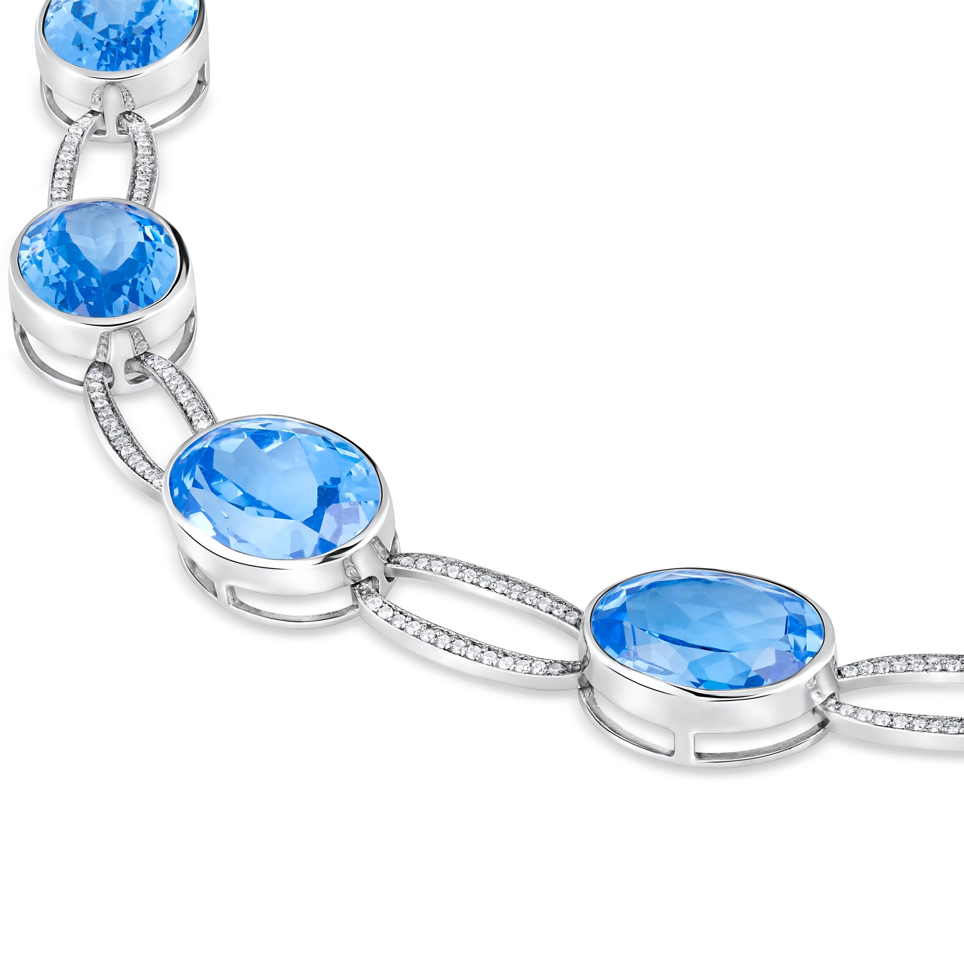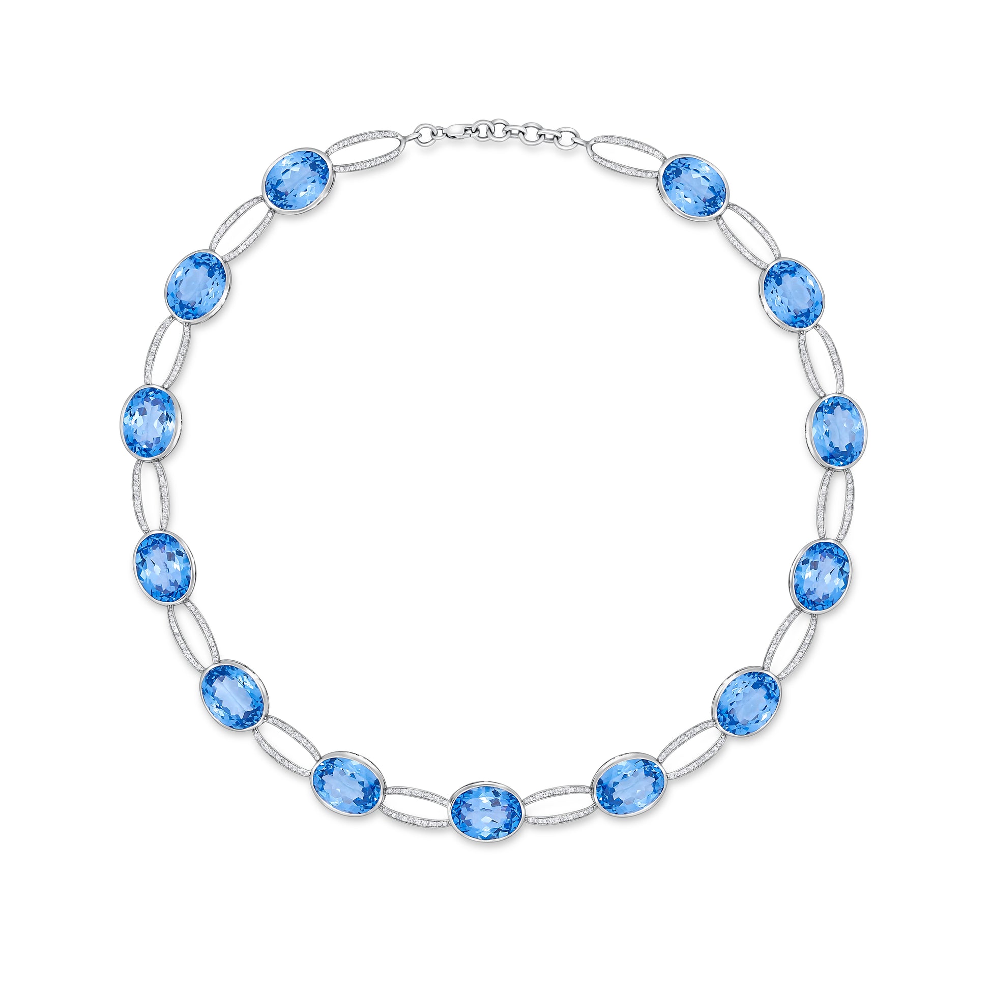 The Velara Soirée offers a refined interplay between structure and fluidity. Alternating between luminous oversized oval gemstones (16x12 mm) and pavé-set elongated links, this necklace introduces rhythm, balance, and sparkle in equal measure. A subtle yet striking choice for elegant evenings or layered daytime styling.